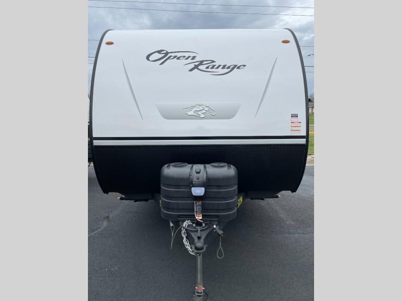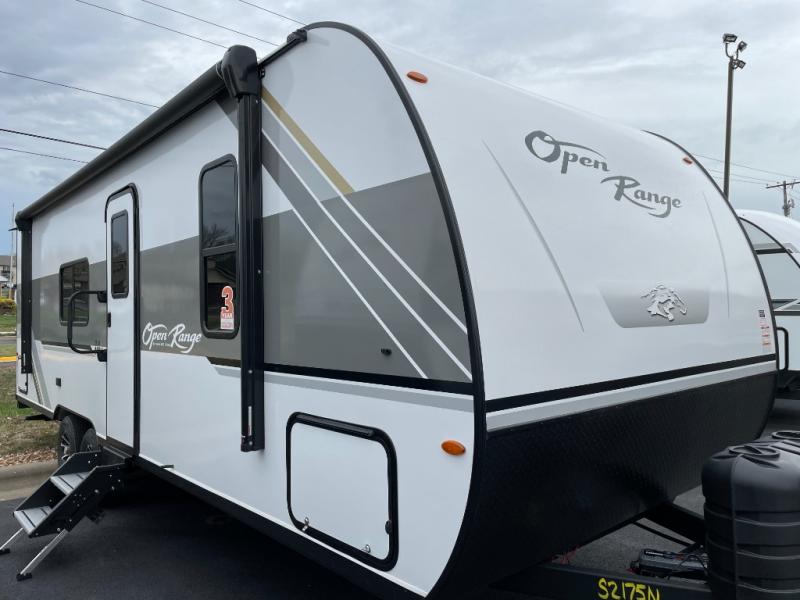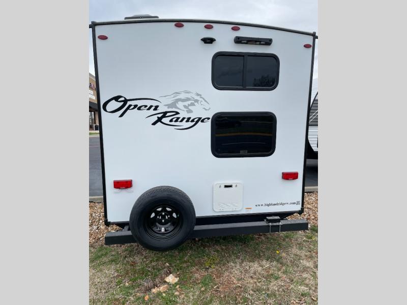 The affordable Open Range Conventional travel trailers by Highland Ridge are ready to meet your camping needs! You will appreciate the durable Magnum Roof system, plus each model is constructed with black front diamond plate protection, 5/8" main floor decking, and self-adjusting electric brakes with E-Z Lube axles for smooth towing. The 81" interior height means you won't feel cramped when relaxing with friends and family, and the residential vinyl flooring throughout is easy to clean, which will be perfect if you're camping with little ones or pets. These models also include a ceiling mount Bluetooth speaker, a digital TV antenna that will go perfectly with the optional Smart TV, plus a 13,500 BTU roof mounted A/C to keep you cool on those hot summer months.