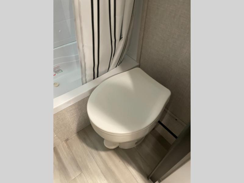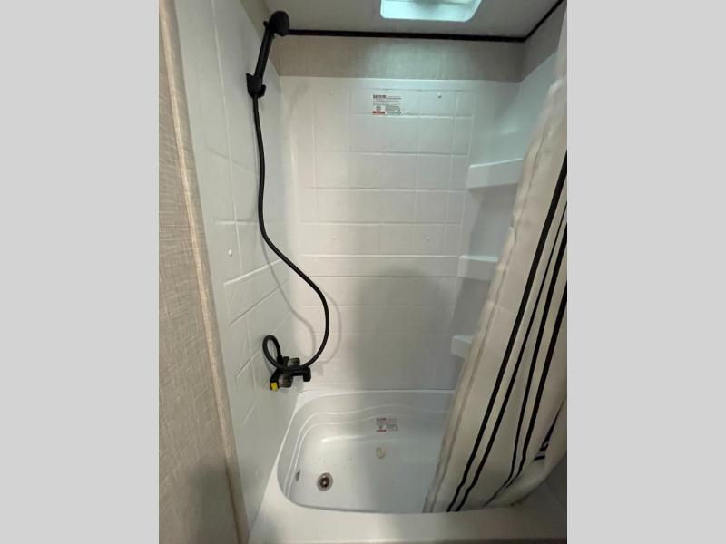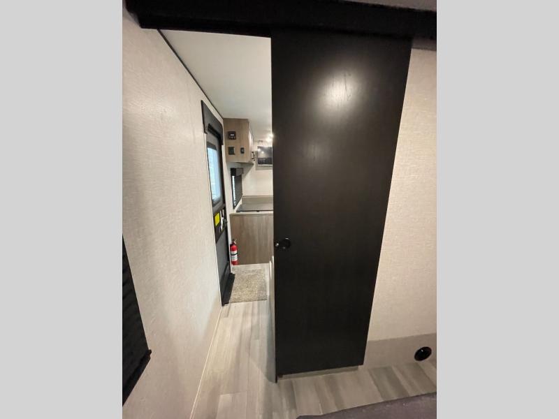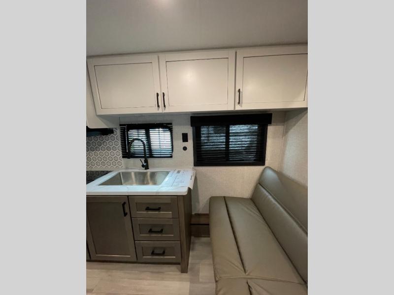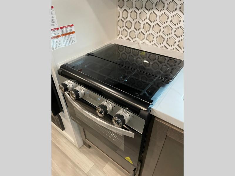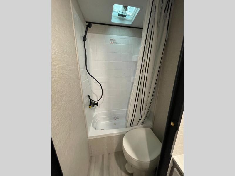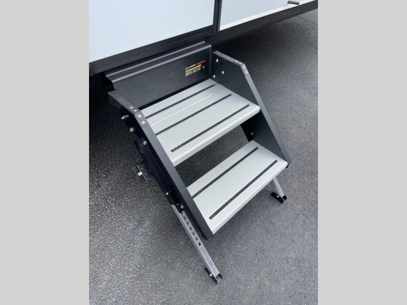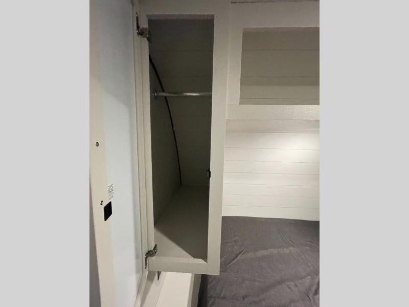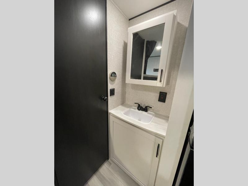 This dual-axle travel trailer can sleep eight people each night, so invite your family or friends along. You will enjoy the private bedroom up front with dual wardrobes to keep your clothes tidy. While the chef of your group is preparing lunch on the three burner cooktop, everyone else can visit on the jack-knife sofa or play a game at the booth dinette. You will also find a large 18' power awning with LED lights outdoors which is where you may usually find everyone. The private bath is right next to the double-size bunks for convenience, and the sink is just outside of this room so two people can freshen up at once.