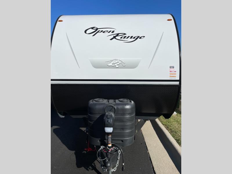 The affordable Open Range Conventional travel trailers by Highland Ridge are ready to meet your camping needs! You will appreciate the durable Magnum Roof system, plus each model is constructed with black front diamond plate protection, 5/8" main floor decking, and self-adjusting electric brakes with E-Z Lube axles for smooth towing. The 81" interior height means you won't feel cramped when relaxing with friends and family, and the residential vinyl flooring throughout is easy to clean, which will be perfect if you're camping with little ones or pets. These models also include a ceiling mount Bluetooth speaker, a digital TV antenna that will go perfectly with the optional Smart TV, plus a 13,500 BTU roof mounted A/C to keep you cool on those hot summer months.