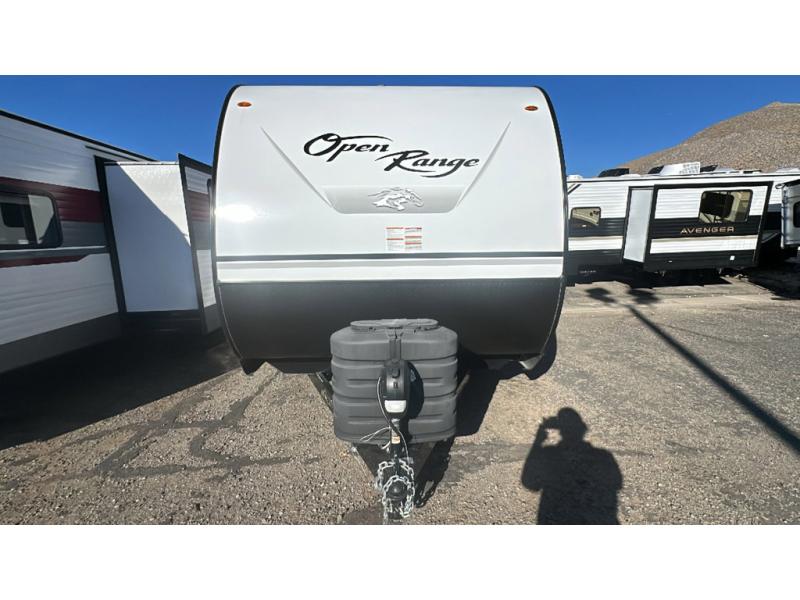The affordable Open Range Conventional travel trailers by Highland Ridge are ready to meet your camping needs! You will appreciate the durable Magnum Roof system, plus each model is constructed with black front diamond plate protection, 5/8" main floor decking, and self-adjusting electric brakes with E-Z Lube axles for smooth towing. The 81" interior height means you won't feel cramped when relaxing with friends and family, and the residential vinyl flooring throughout is easy to clean, which will be perfect if you're camping with little ones or pets. These models also include ceiling mount Bluetooth speaker, a digital TV antenna that will go perfectly with the optional Smart TV, plus a 13,500 BTU roof mounted A/C to keep you cool on those hot summer months.