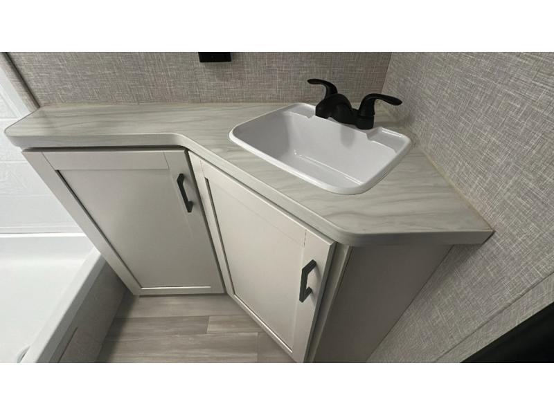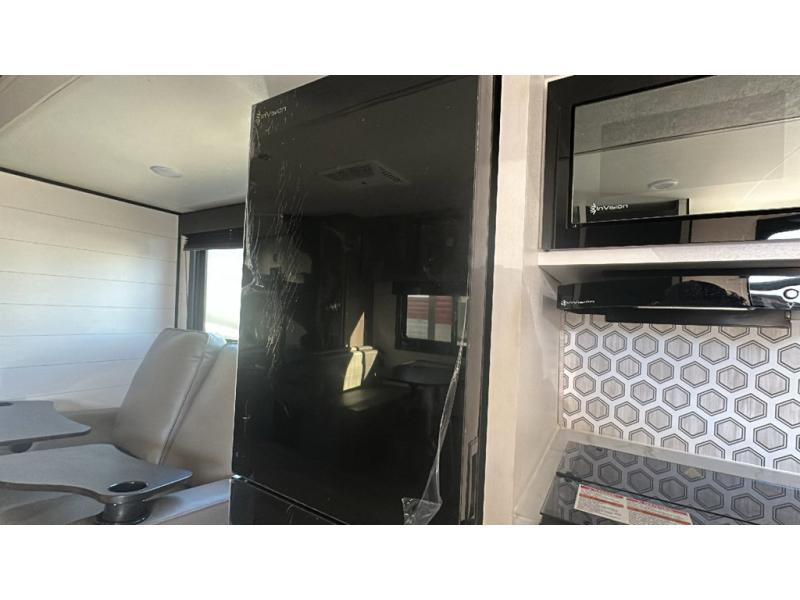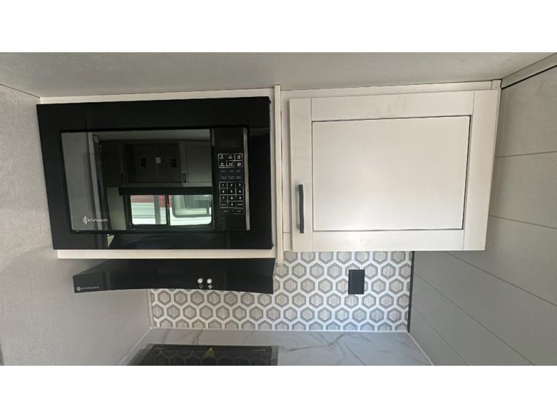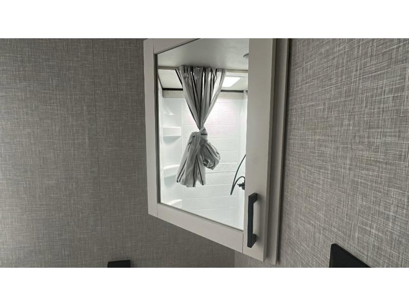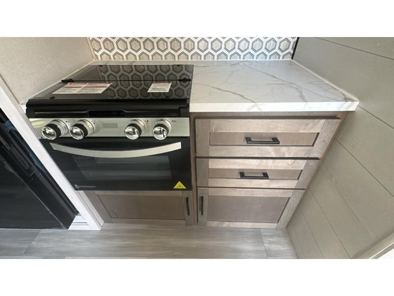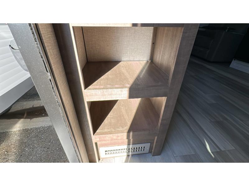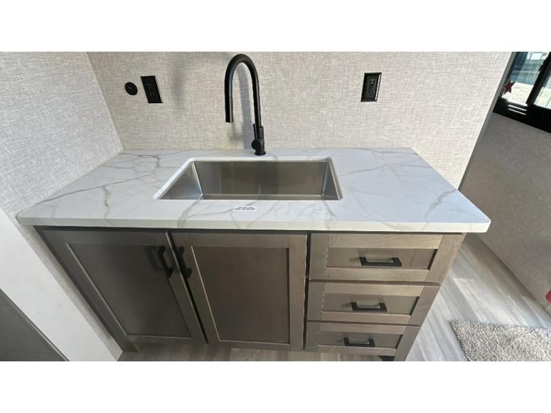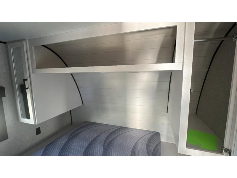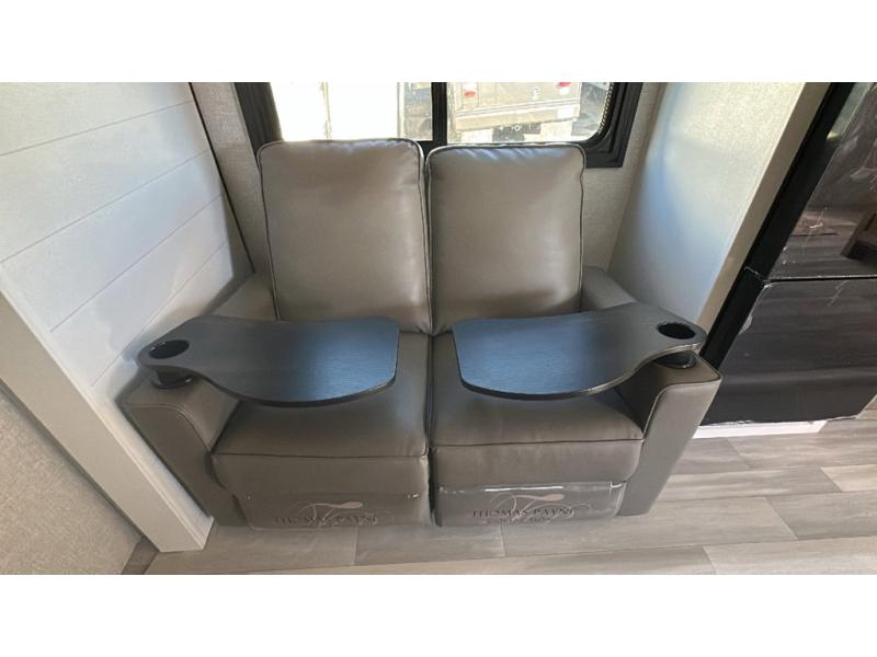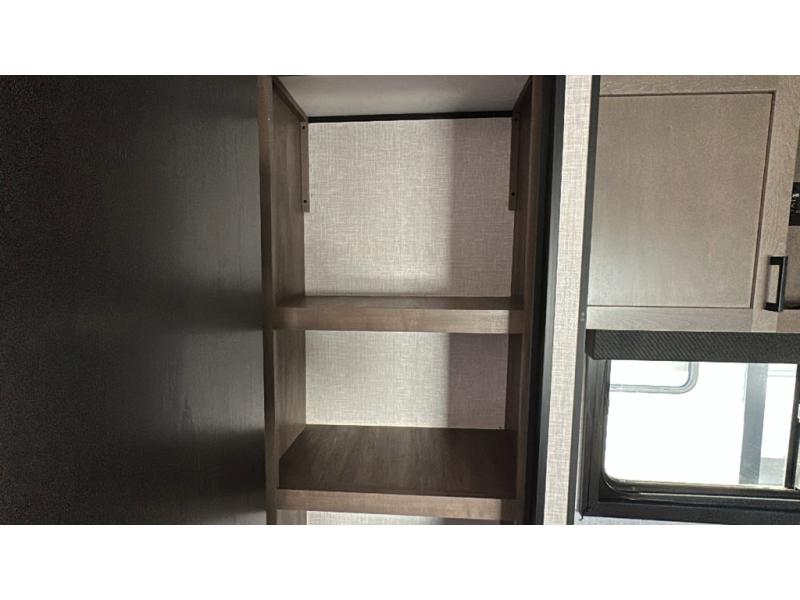 This dual-axle travel trailer can sleep eight people each night, so invite your family or friends along. You will enjoy the private bedroom up front with dual wardrobes to keep your clothes tidy. While the chef of your group is preparing lunch on the three burner cooktop, everyone else can visit on the jack-knife sofa or play a game at the booth dinette. You will also find an 18' power awning with LED lights outdoors which is where you may usually find everyone. The walk-in pantry and additional storage beside the pantry will let you keep snacks, paper goods, and more fully stocked. And the private bathroom is right next to the double-size bunks for added convenience.