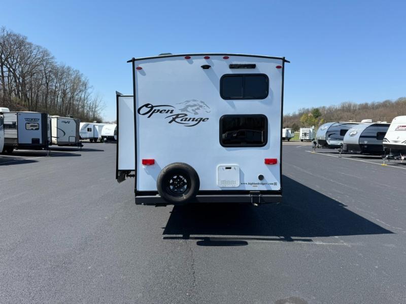 The affordable Open Range Conventional travel trailers by Highland Ridge are ready to meet your camping needs! You will appreciate the durable Magnum Roof system, plus each model is constructed with black front diamond plate protection, 5/8" main floor decking, and self-adjusting electric brakes with E-Z Lube axles for smooth towing. The 81" interior height means you won't feel cramped when relaxing with friends and family, and the residential vinyl flooring throughout is easy to clean, which will be perfect if you're camping with little ones or pets. These models also include ceiling mount Bluetooth speaker, a digital TV antenna that will go perfectly with the optional Smart TV, plus a 13,500 BTU roof mounted A/C to keep you cool on those hot summer months.