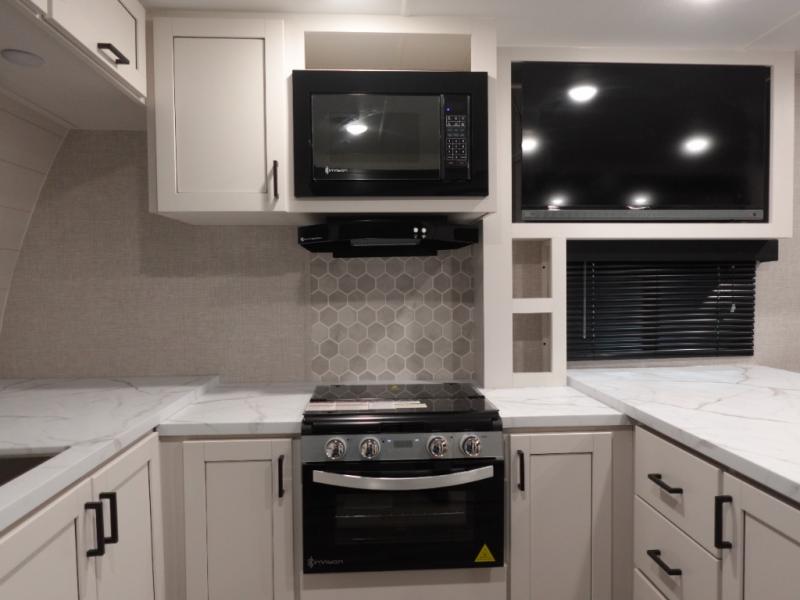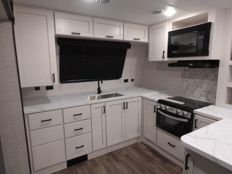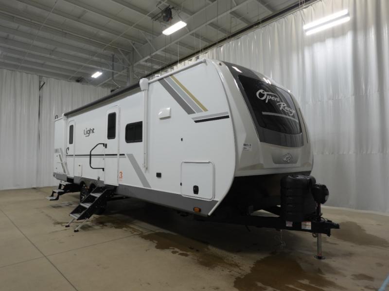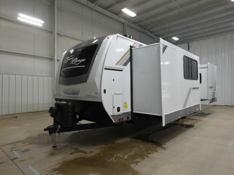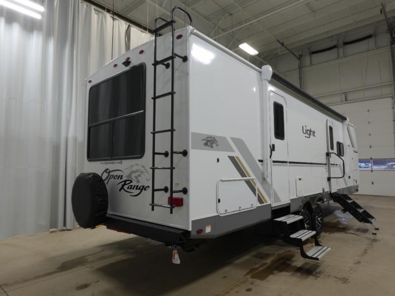 With every Open Range Light travel trailer by Highland Ridge there is a class leading l-beam chassis, and each includes TuffShell vacuumed bonded and laminated construction, reinforced with heavy duty fiberglass, and welded aluminum frames, plus Thermal Seal which includes an enclosed, insulated and heated underbelly and a fully insulated roof with PVC roofing membrane for four seasons of camping. Inside you will love the look of the hardwood cabinet doors, beautiful Coastal Linen decor, and residential vinyl flooring throughout making each RV pet and kid friendly. And don't forget about the TravelLink which is Bluetooth control of slides, lighting, awnings, cooling and more making setup easy. There are many more features included in each Light, start your lightweight adventure today!