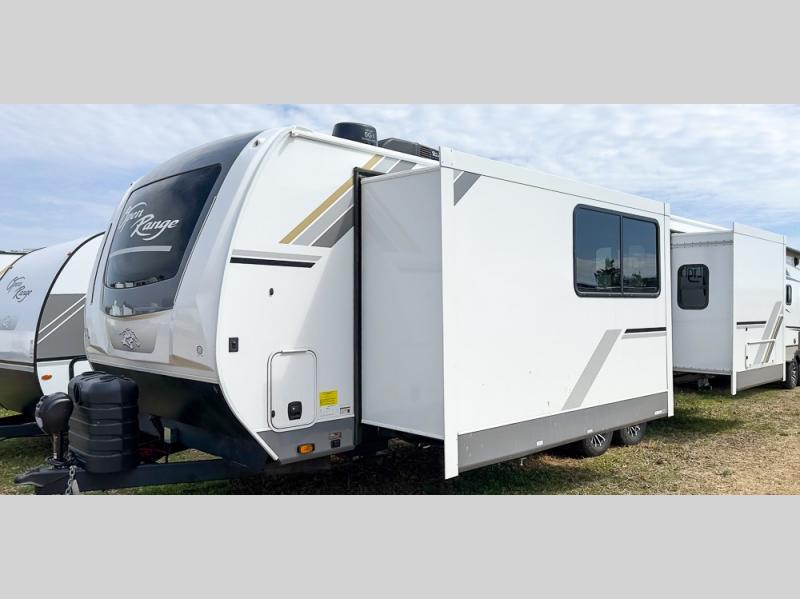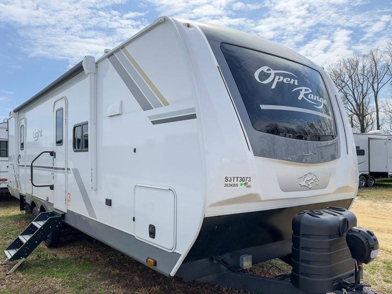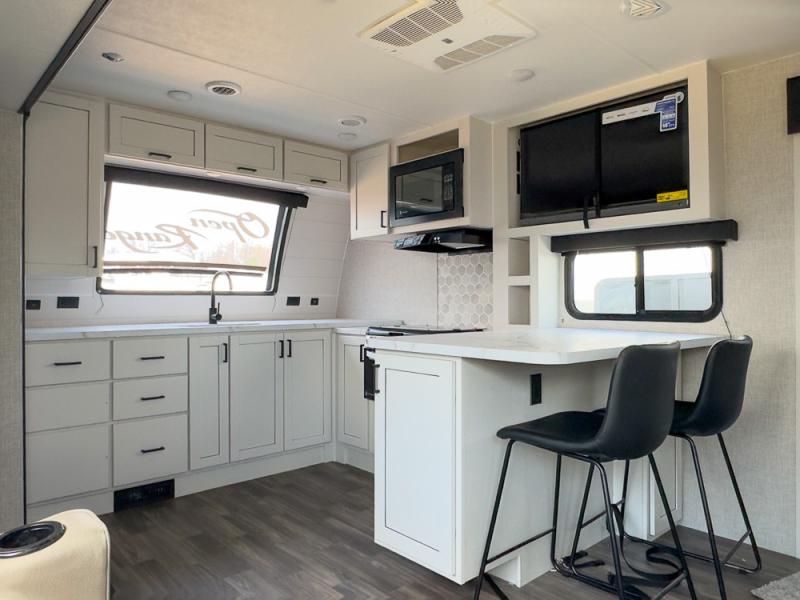 With every Open Range Light travel trailer by Highland Ridge there is a class leading l-beam chassis, and each includes TuffShell vacuumed bonded and laminated construction, reinforced with heavy duty fiberglass, and welded aluminum frames, plus Thermal Seal which includes an enclosed, insulated and heated underbelly and a fully insulated roof with PVC roofing membrane for four seasons of camping. Inside you will love the look of the hardwood cabinet doors, beautiful Coastal Linen decor, and residential vinyl flooring throughout making each RV pet and kid friendly. And don't forget about the TravelLink which is Bluetooth control of slides, lighting, awnings, cooling and more making setup easy. There are many more features included in each Light, start your lightweight adventure today!