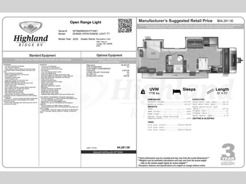 2025 Highland Ridge Open Range Light travel trailer 263KBS highlights: