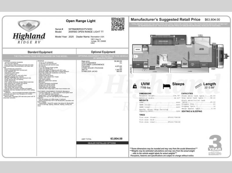 2025 Highland Ridge Open Range Light 265RBS Travel Trailer – Key Features