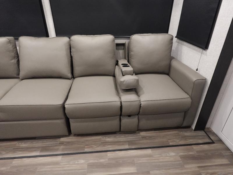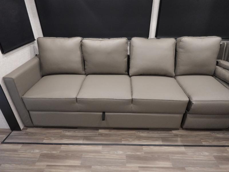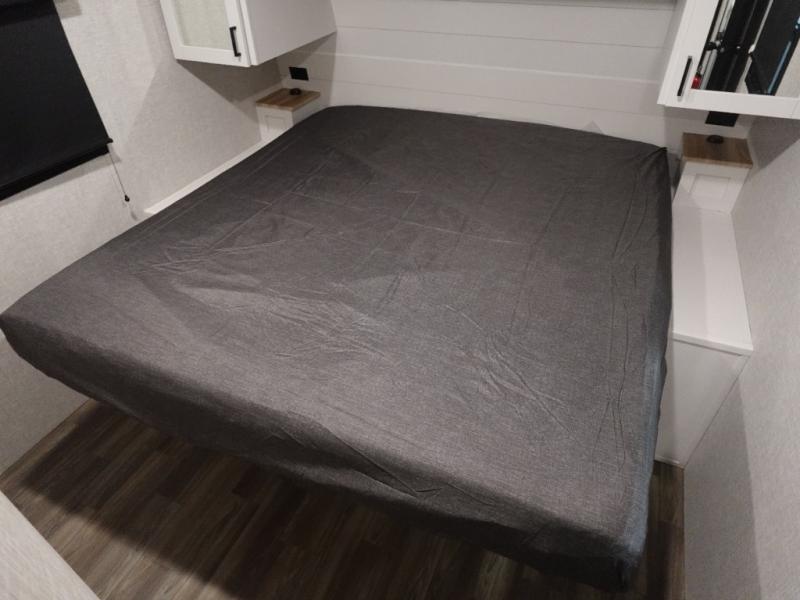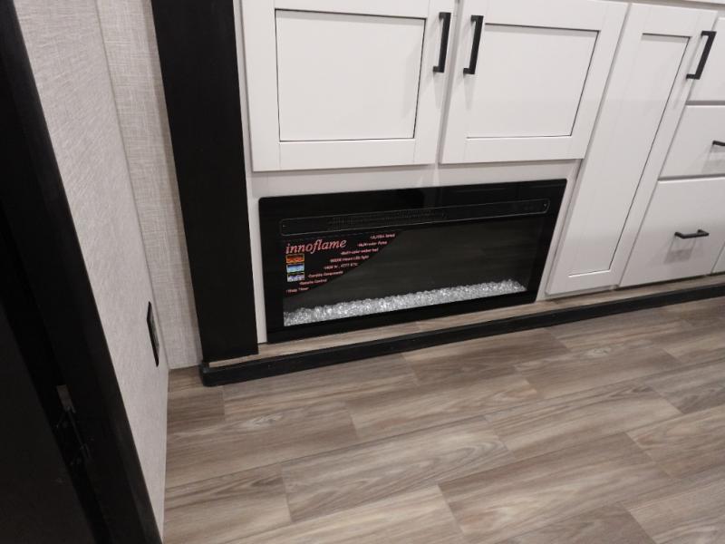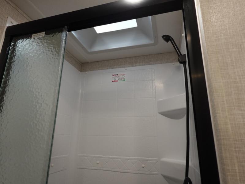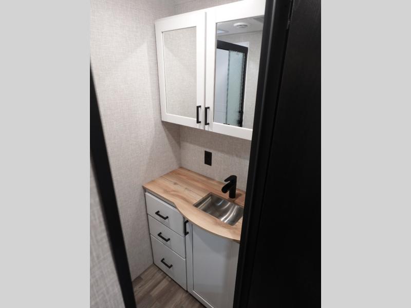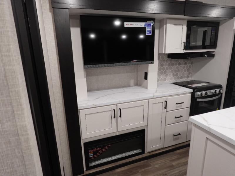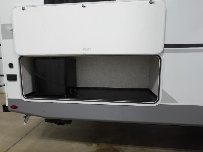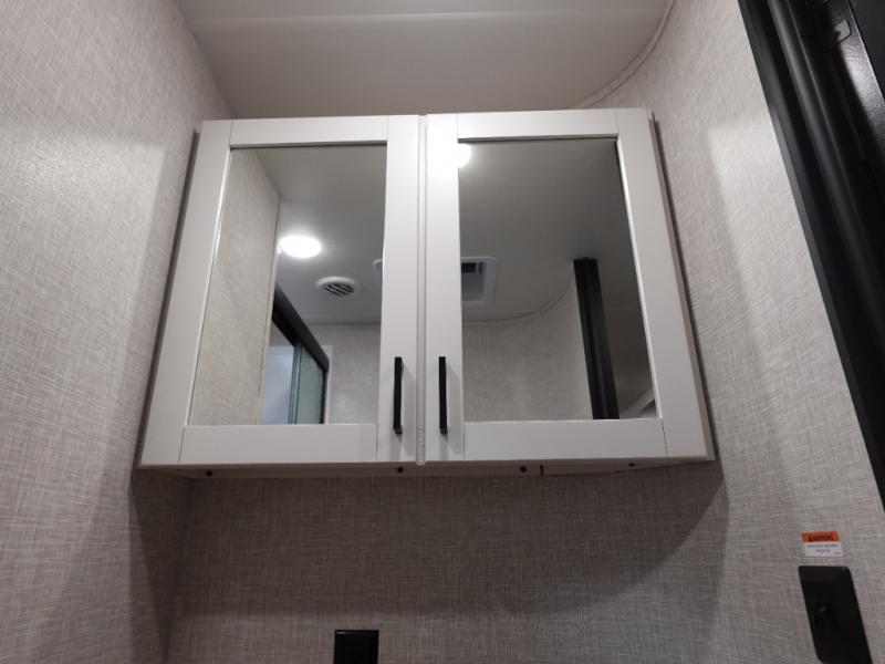 This travel trailer will have you feeling right at home! The rear private bunkhouse has plenty of space for the kiddos to move around, as well as a set of double-size bunks with a ladder, two wardrobes, and a slide with a flip-up bunk above a jackknife sofa. Everyone can gather together and relax on the super sofa. The kitchen island makes meal prepping easier and you can store your dishes in the hutch. You could even cook your meals while breathing in some fresh air with the outside kitchen which also has a refrigerator to keep your beverages cold. There's a full bathroom to stay clean and a closet in the front private bedroom with washer/dryer prep if you want to add those appliances.