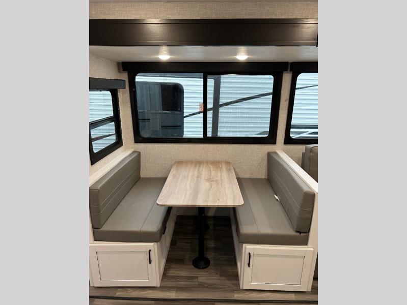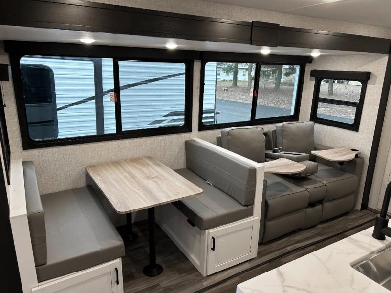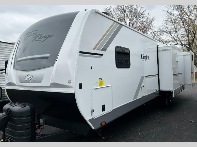 With every Open Range Light travel trailer by Highland Ridge there is a class leading l-beam chassis, and each includes TuffShell vacuumed bonded and laminated construction, reinforced with heavy duty fiberglass, and welded aluminum frames, plus Thermal Seal which includes an enclosed, insulated and heated underbelly and a fully insulated roof with PVC roofing membrane for four seasons of camping. Inside you will love the look of the hardwood cabinet doors, beautiful Cascade Ivory decor, and residential vinyl flooring throughout making each RV pet and kid friendly. And don't forget about the TravelLink which is Bluetooth control of slides, lighting, awnings, cooling and more making setup easy. There are many more features included in each Light, start your lightweight adventure today!