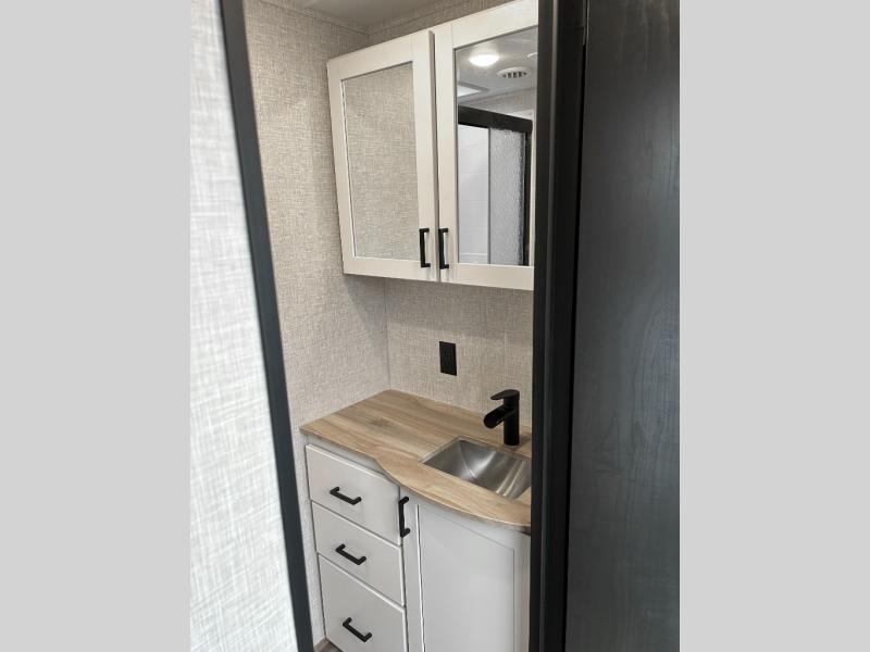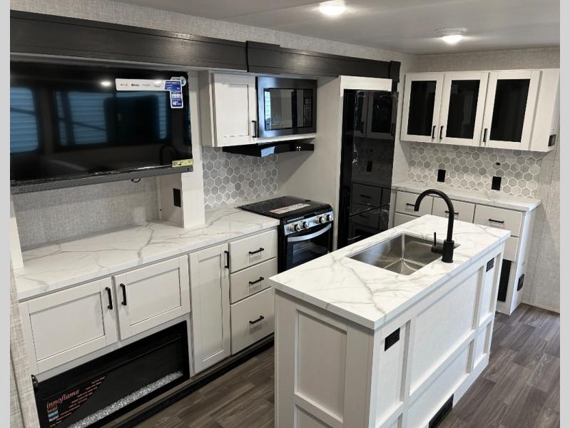 With King Bedroom, Xtend Solar I Package, Theater Seats, Kitchen Island, Pantry, Fireplace, Thermal Seal, Tuff Shell and Travel Link System