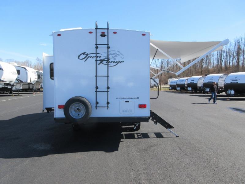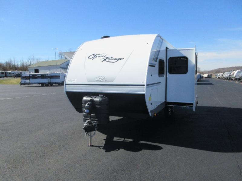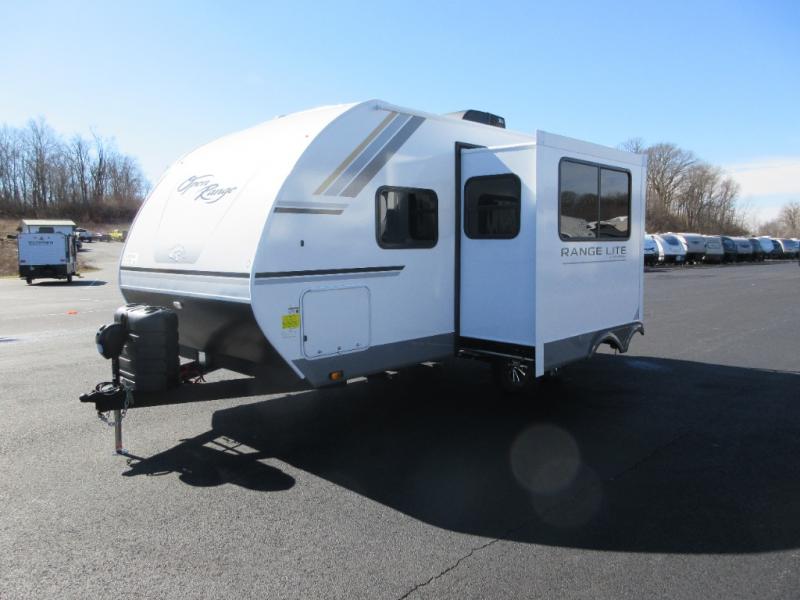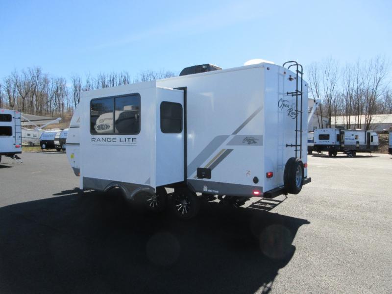 Each one of these Highland Ridge RV Range Lite travel trailers maximize their interior space while staying lightweight thanks to the TuffShell fiberglass walls! The residential floor slides create more interior space, and the residential vinyl flooring throughout makes them kid and pet friendly. A few construction features you will appreciate include a fully-walkable roof, a thermal seal which means the underbelly is enclosed, heated, and insulated, and a fully insulated roof with a PVC roofing membrane. Plus, there is an exterior grill hookup quick connect port, self-adjusting electric brakes to help you safely arrive, and an oversized pass-through storage area with motion lighting. Each model also includes the Xtend Solar I Package with a 200 watt solar panel with a 30 amp solar controller so boondocking is easier than ever.