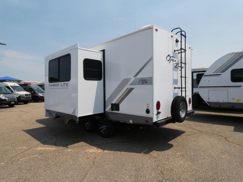 Each one of these Highland Ridge RV Range Lite travel trailers maximize their interior space while staying lightweight thanks to the TuffShell fiberglass walls! The residential floor slides create more interior space, and the residential vinyl flooring throughout makes them kid and pet friendly. A few construction features you will appreciate include a fully-walkable roof, a thermal seal which means the underbelly is enclosed, heated, and insulated, and a fully insulated roof with a PVC roofing membrane. Plus, there is an exterior grill hookup quick connect port, self-adjusting electric brakes to help you safely arrive, and an oversized pass-through storage area with motion lighting. Each model also includes the Xtend Solar I Package with a 200 watt solar panel with a 30 amp solar controller so boondocking is easier than ever.