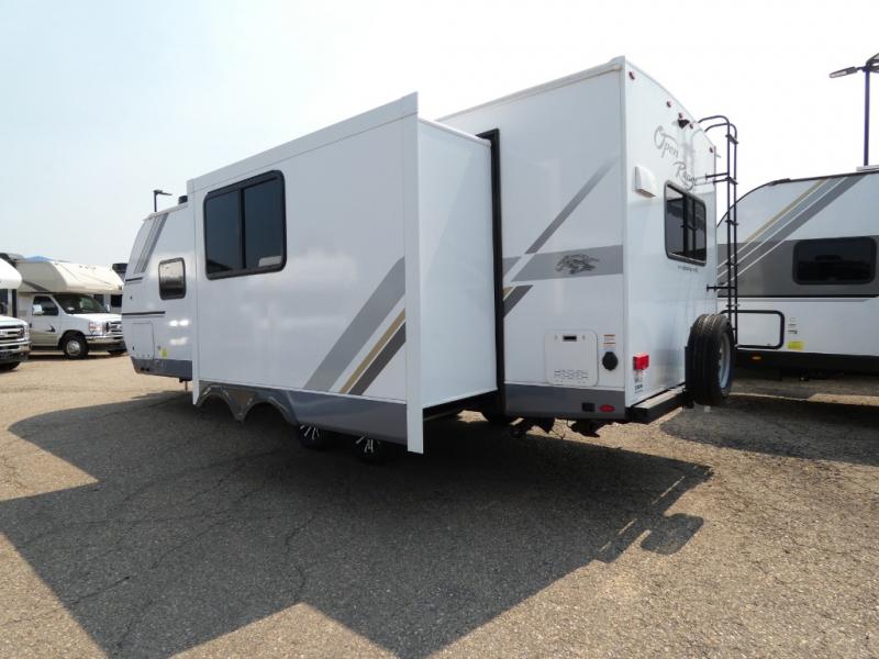 Each one of these Highland Ridge RV Range Lite travel trailers maximize their interior space while staying lightweight thanks to the TuffShell fiberglass walls! The residential floor slides create more interior space, and the residential vinyl flooring throughout makes them kid and pet friendly. A few construction features you will appreciate include a fully-walkable roof, a thermal seal which means the underbelly is enclosed, heated, and insulated, and a fully insulated roof with a PVC roofing membrane. Plus, there is an exterior grill hookup quick connect port, self-adjusting electric brakes to help you safely arrive, and an oversized pass-through storage area with motion lighting. Each model also includes the Xtend Solar I Package with a 200 watt solar panel with a 30 amp solar controller so boondocking is easier than ever.