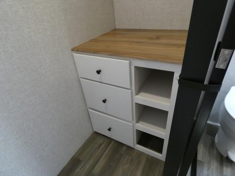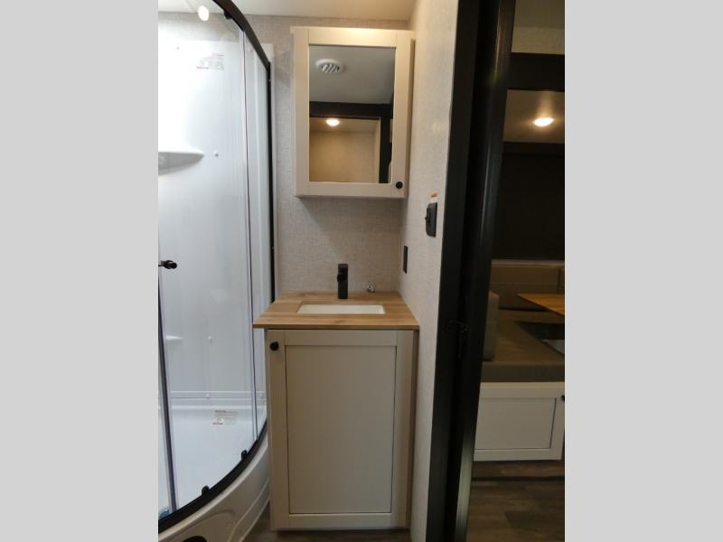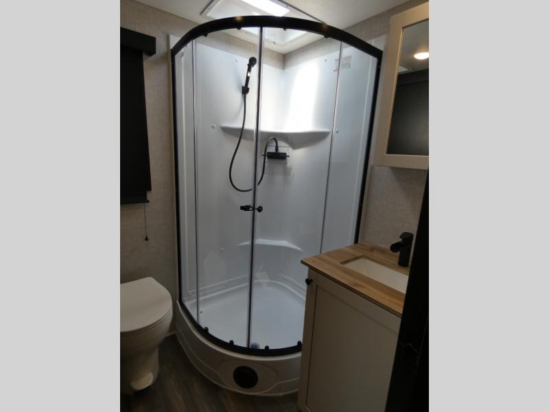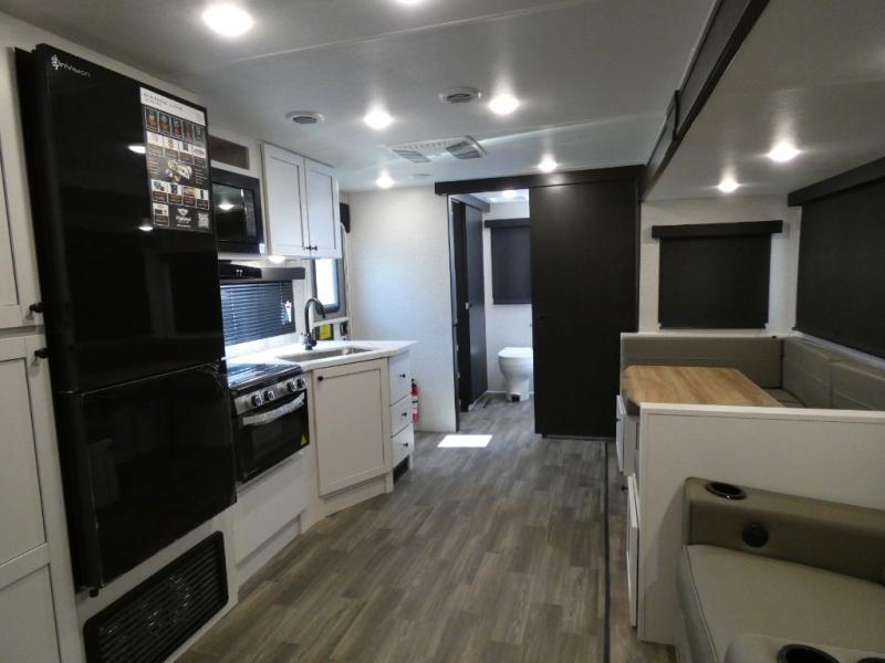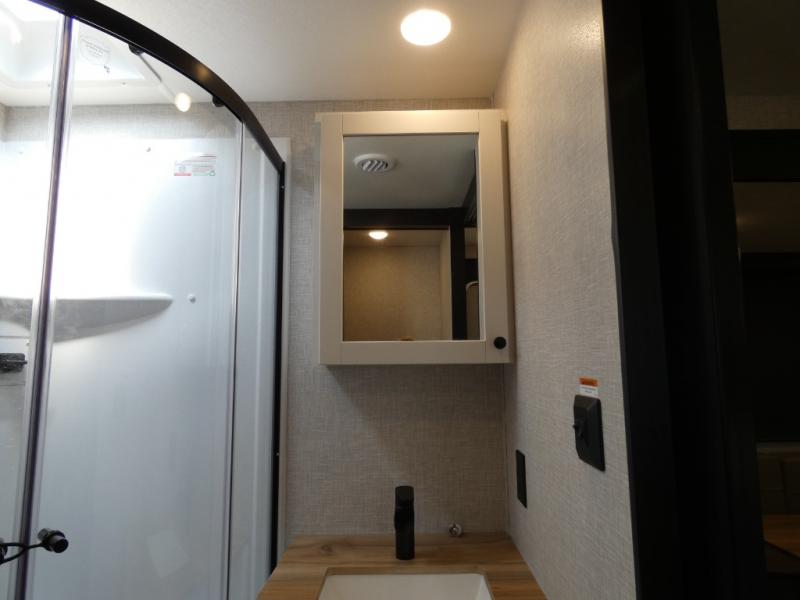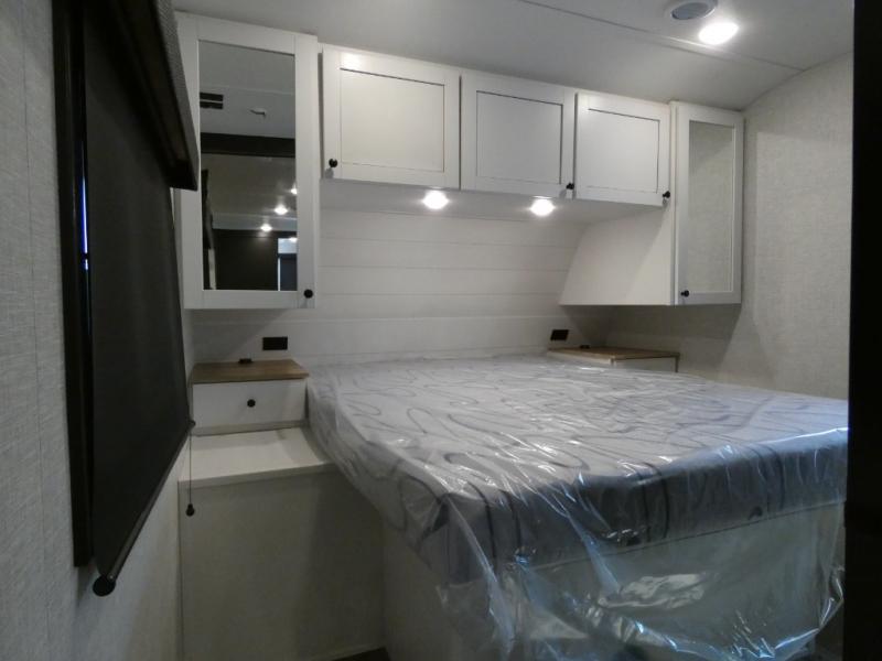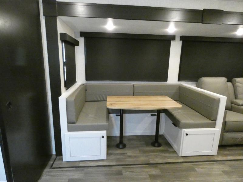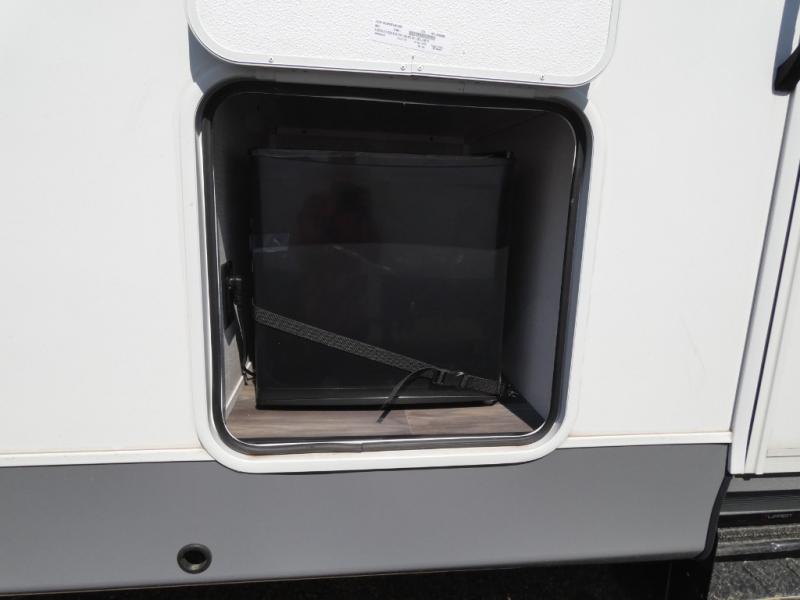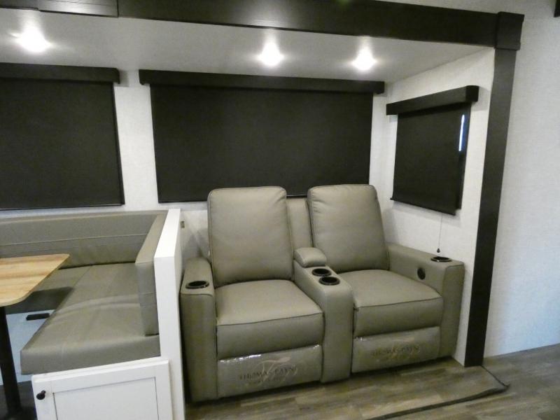 You will love all that this travel trailer has to offer! From the dual entry doors to the full rear bathroom with a radius shower and a large walk-in closet to keep your linens close. Prepare your best meals with the three burner cooktop and 17" oven then enjoy them at the U-shaped dinette and play a card game after dinner or you can relax on the theater seats and watch your favorite movie on the smart HDTV. The front private bedroom has a queen bed, wardrobes on either side for your hang up clothes, and even an entrance/exit door to quietly slip out for a quick fishing trip in the early mornings!