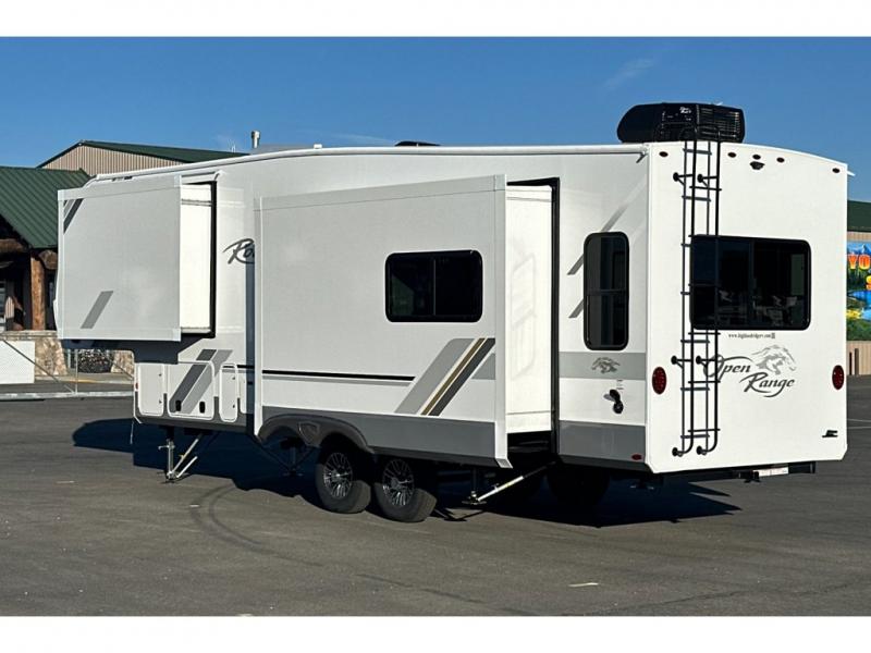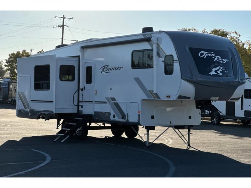 Each one of these Highland Ridge RV Roamer fifth wheels were built for the long haul! They have a TuffShell vacuum bonded laminated construction that is reinforced with heavy-duty fiberglass and welded aluminum frames, plus a PVC roofing membrane. Experience more interior space with a 100" wide body frame and an ACCU-SLIDE slide system with a 42" deep four corner compression and are flush to the residential vinyl flooring to prevent tripping. The mandatory Four Season package lets you camp all year round with a heated and enclosed underbelly, a high performance furnace, and a R-9 block foam insulation in the sidewalls. You can control your unit at the touch of a finger with the TravelLINK smart RV system that has Bluetooth control of the awnings, lighting, slides, heating, cooling, and more. Come find the right one for you today!
