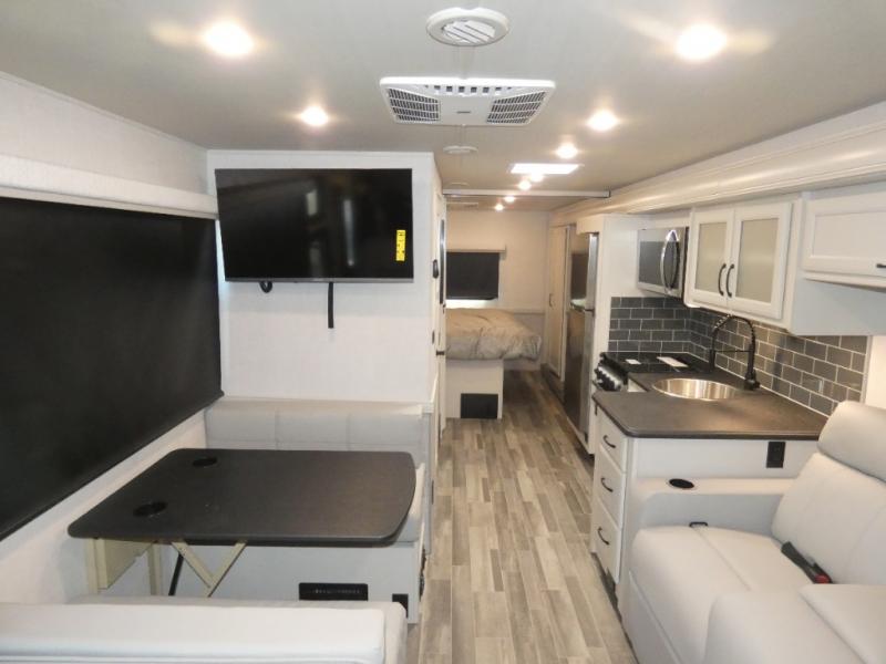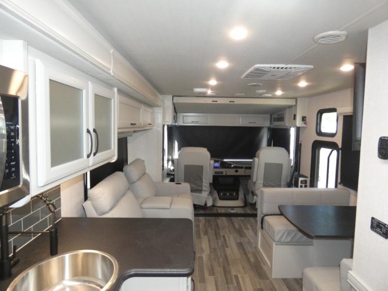Take the grandkids or a few friends on a road trip of a lifetime with this motorhome! The Hide-A-Loft drop down electric bed is big enough for two to sleep on. There is even a rear private bedroom with a Serenity Series 72" x 75" king bed across from a wardrobe and a dresser with a LED TV. The chef can prepare their best meals either inside with the three burner cooktop or breathe in some fresh air while cooking at the exterior kitchenette. You can even watch the big game outside with the exterior entertainment center with a LED TV. Enjoy your meals at the L-shaped dinette with an LED TV next to it and freshen up in the full bathroom with the 34" x 22" shower with a skylight above for natural lighting!