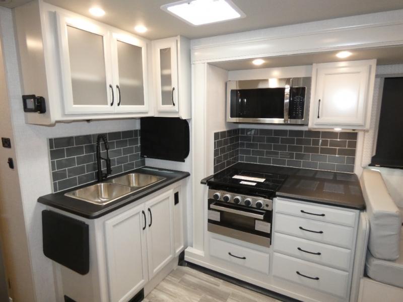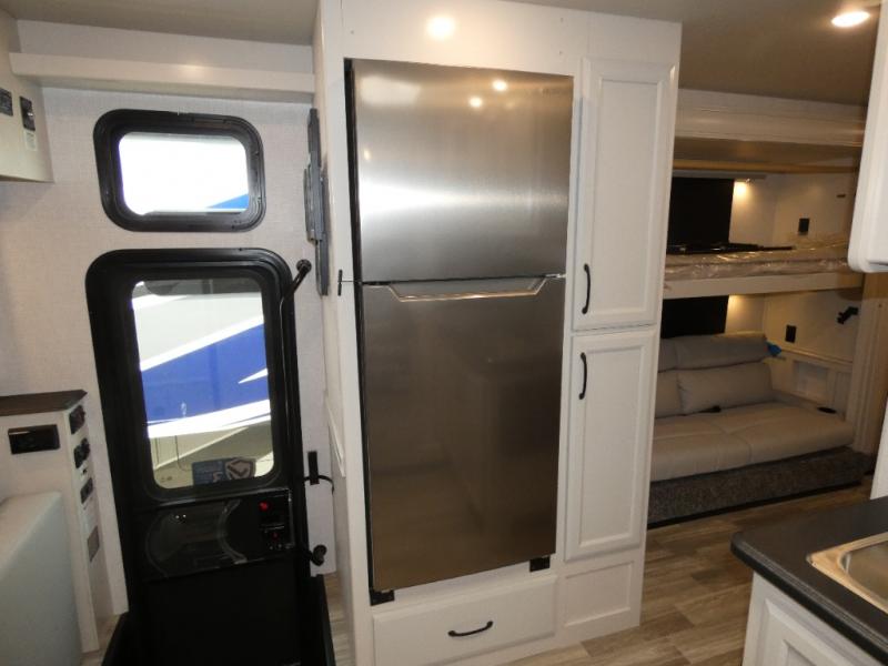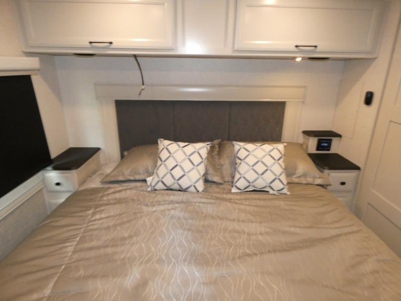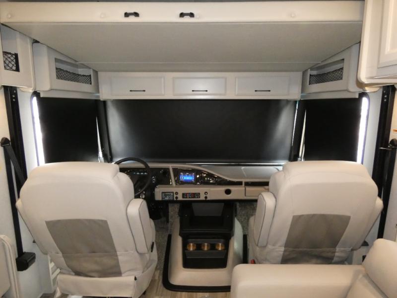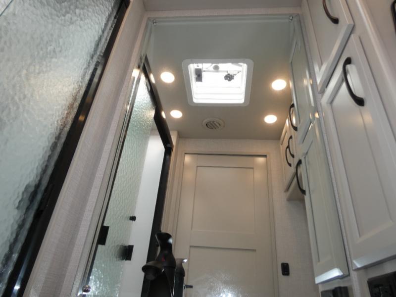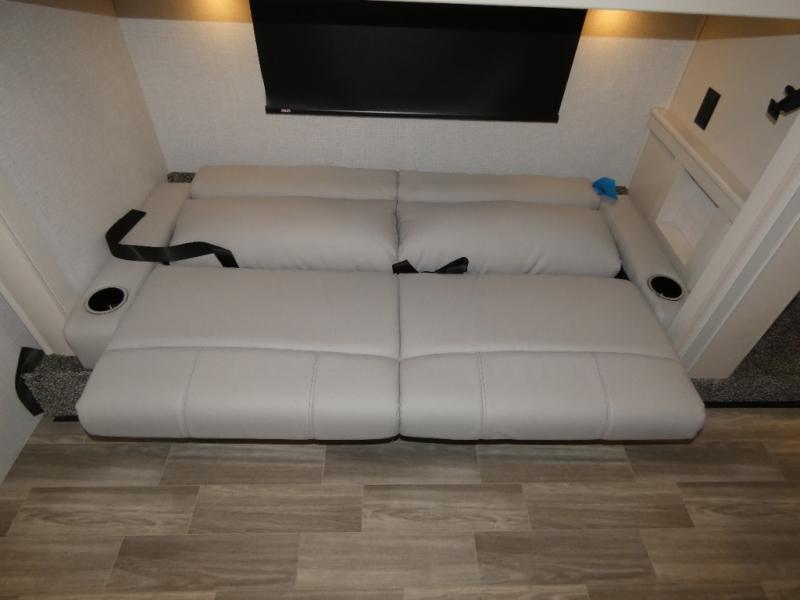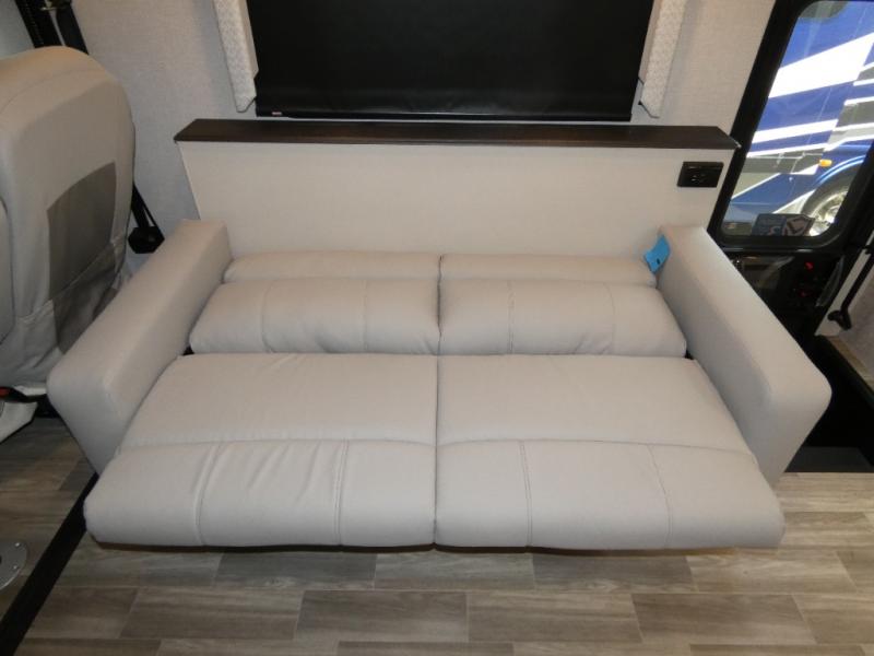 You can bring the whole family with you in this motorhome! The rear private bedroom has a Serenity Series RV king bed to lay your head on at night across from an LED TV with storage and wardrobes on either side of it. There are more sleeping spaces between the Hide-A-Loft electric drop down bunk over the cab, the living area jackknife sofa, and the flip-up top bunk above the jackknife sofa which has a LED TV and entertainment center. You could even transform the Dream Dinette into an extra sleeping space when you aren't using it to enjoy a meal prepared with the galley extension, the three burner cooktop, and the residential refrigerator. Everyone can freshen up in the full bathroom with the 34" x 22" shower and keep your towels close by with the linen closet inside too!