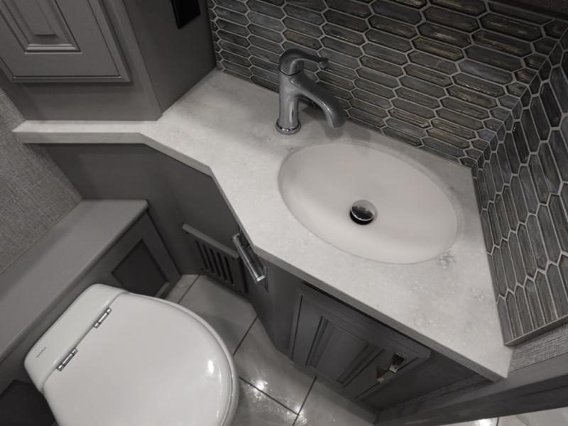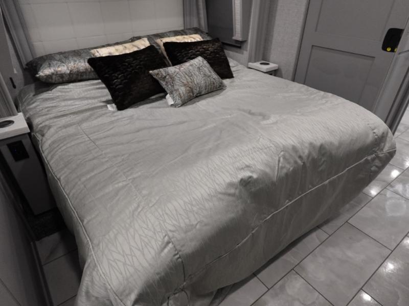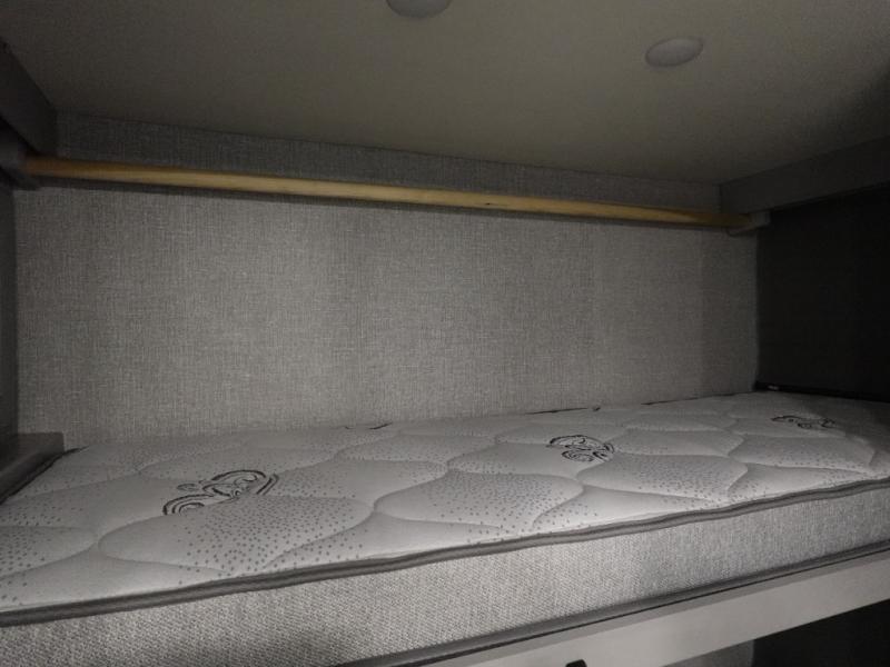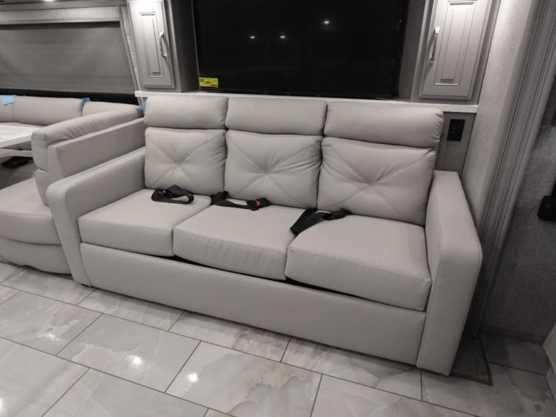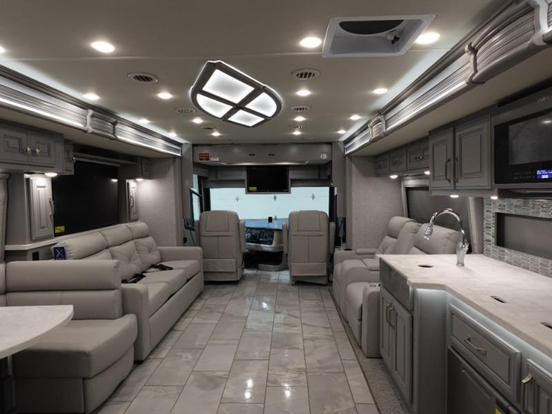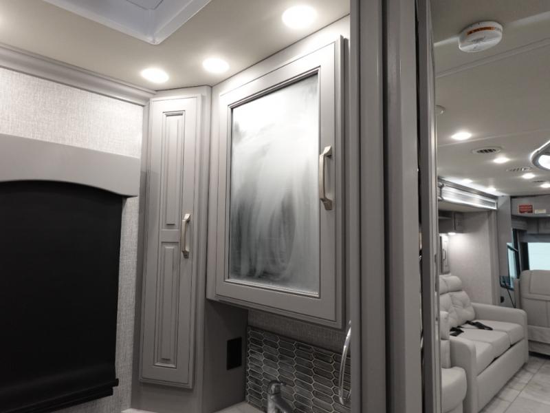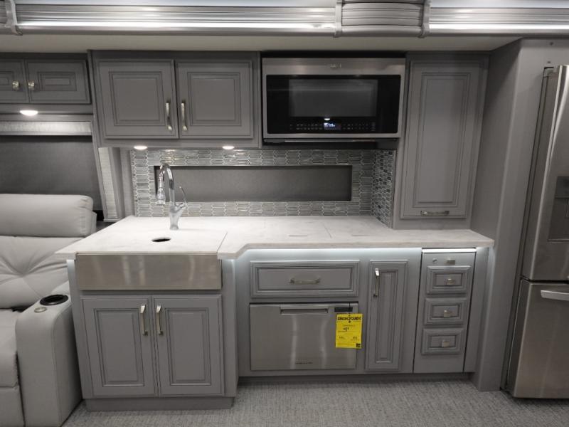 This Armada Class A diesel motorhome is filled with high-class amenities and luxurious furnishings! The back of this coach has a small private bunkhouse that is perfect for the kids or grandkids to spend the night in. Separating the bunkhouse from the master bedroom is a walk-through bathroom that allows campers from both bedrooms to have easy access at night. The master bedroom is undeniably comfortable with its Encore Series king bed, opposing slides, LED TV, dresser, and washer/dryer. Out in the main living area, you'll have more space once again with another set of opposing slides. These slides create lots of room for the theater seats, sofa sleeper with queen mattress, and U-shaped dinette. Spend some time getting a couple of meals together in the kitchen with the convection microwave and two-burner induction cooktop. You will also appreciate the residential refrigerator with ice and water in the door.