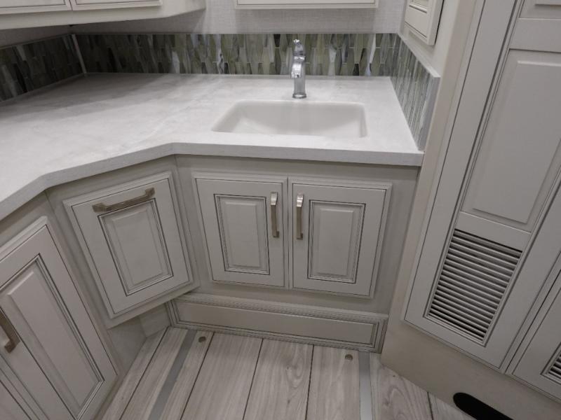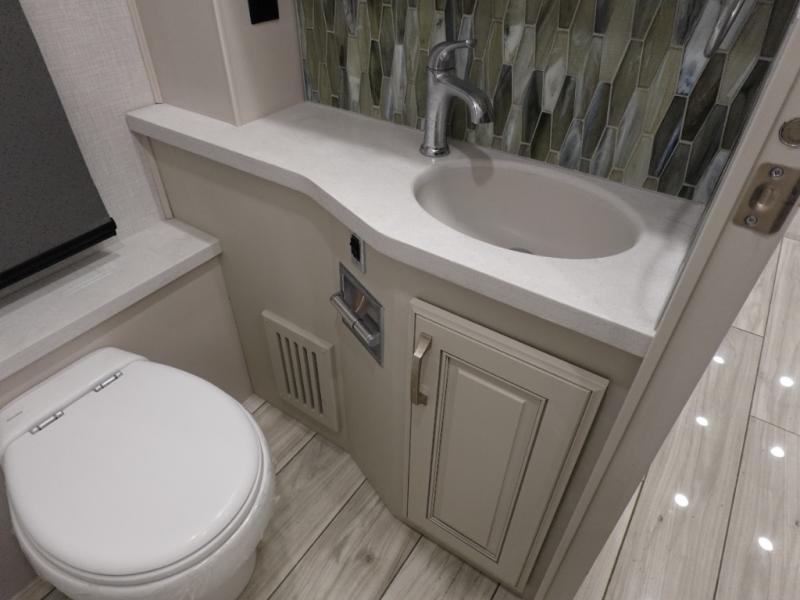 If you think glamping is the way to go, you're going to have to see what the Holiday Rambler Armada Class A diesel motorhome has in store for you! The Armada has been constructed with a Powerlock system, a Dryseal edge coating, a vacu-bond aluminum-framed constructed roof, sidewalls, and floor, as well as having a premium gel exterior Vetrosina fiberglass skin. The exterior service station includes a water pump switch, exterior shower, black tank flush, city water hookup, towel holder, and drainage valves. Each model includes hassle-free electrical features, such as a Safe-T-View camera system, a whole coach water filtration system, and an impressive three 15,000 BTU A/C's to keep you comfortable all summer long. You'll love the luxurious interior that includes porcelain tile flooring, polished solid surface countertops, a comfortable king bed, plus many more eye-catching features!