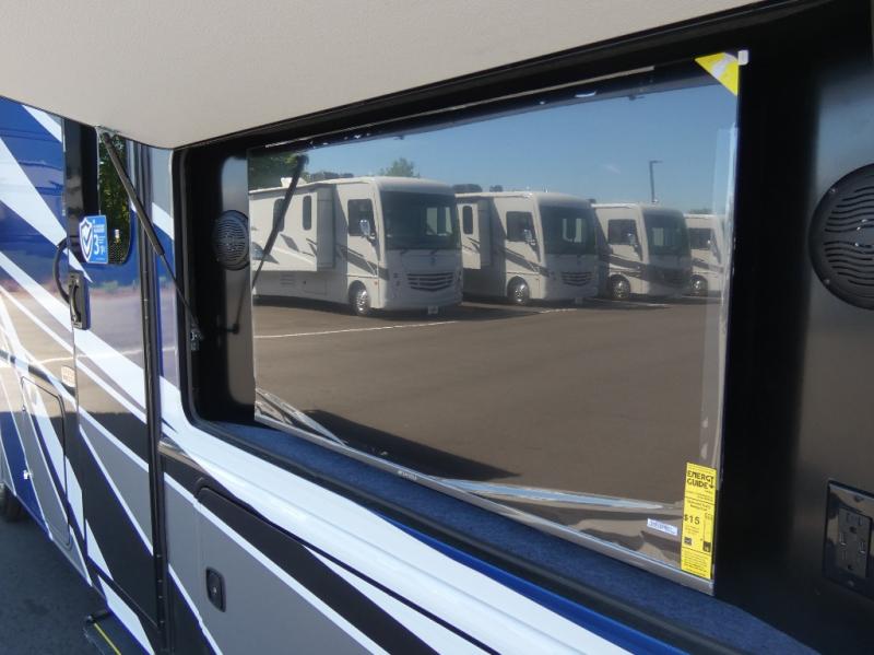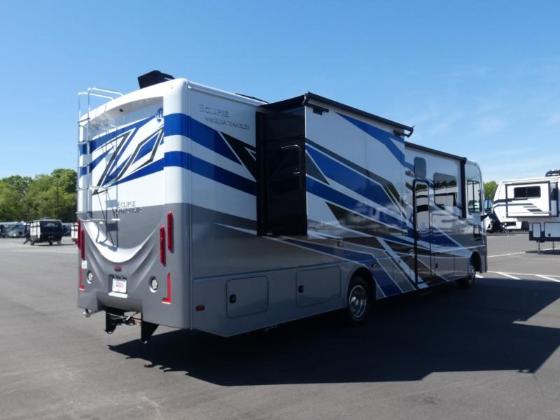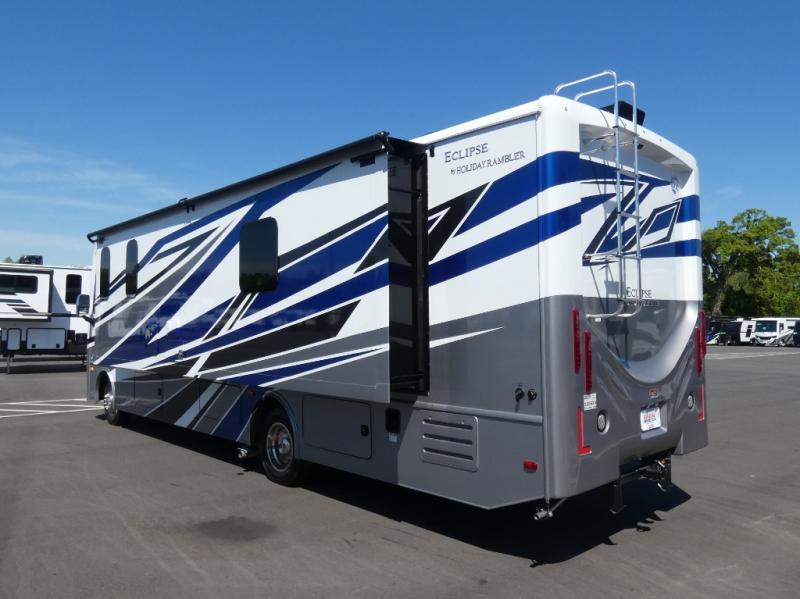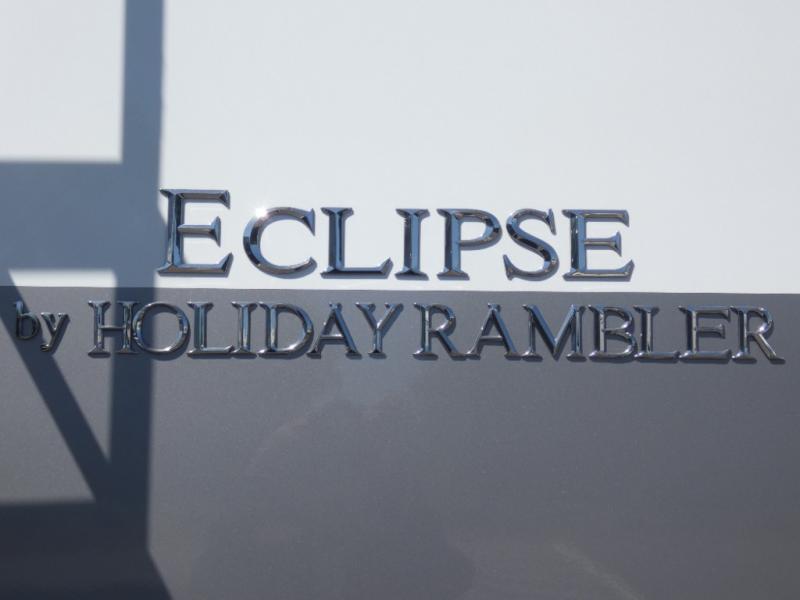 The Eclipse Class A gas motorhome by Holiday Rambler is packed with high-end features for an unforgettable RV experience. A 22,000 lb. chassis provides a strong foundation, and the Ford 7.3L V8 335HP engine will power your journeys near and far. You will love the smooth drive thanks to the tuned SACHS shocks and power assisted steering. The 10.1" capacitive touch screen stereo is sure to come in handy with its "always on" back-up camera, 2 USB ports, and two-zone speaker control, plus it includes built-in Bluetooth and is SiriusXM ready. You will enjoy the luxurious interior with vinyl tile flooring, stainless steel appliances, a glass shower door, plus a designer bedspread and pillows with shams. And don't overlook the exterior with its enclosed waste station, electric awning with LED lighting, automatic hydraulic leveling jacks, slide out awning toppers, and so much more!