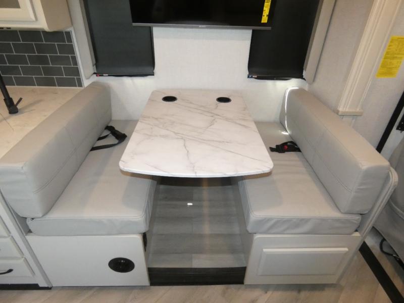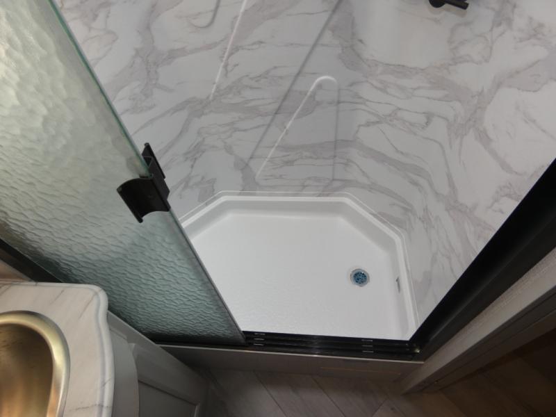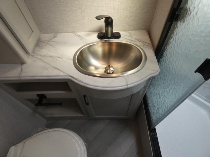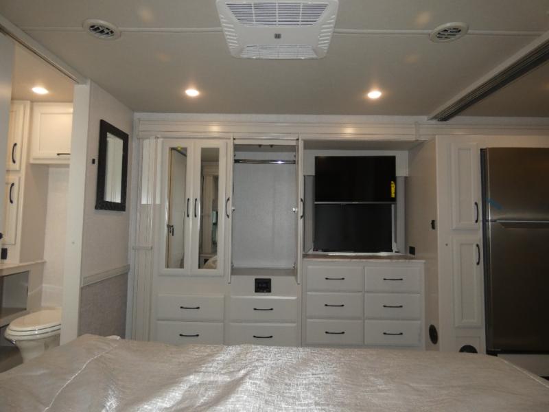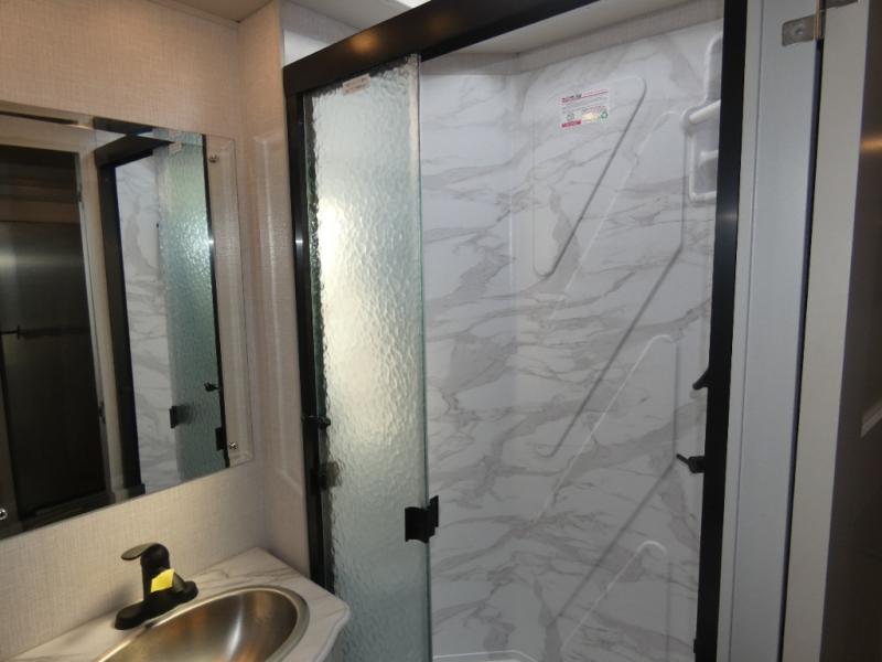 Traveling with friends and family has never been easier than in this spacious coach! You will find two slide outs plus two full baths for maximum convenience. The Serenity Series king bed will provide a great night's rest, while your guests take the Hide-A-Loft electric drop-down bed, and the Dream Dinette. Once everyone is ready for the day, head to the kitchen to prepare eggs and bacon on the three burner cooktop, or use the stainless steel over-the-range microwave oven if you're on the go. You'll also appreciate the pantry and stainless steel residential refrigerator for food storage, plus the double bowl stainless steel sink for easy clean up.