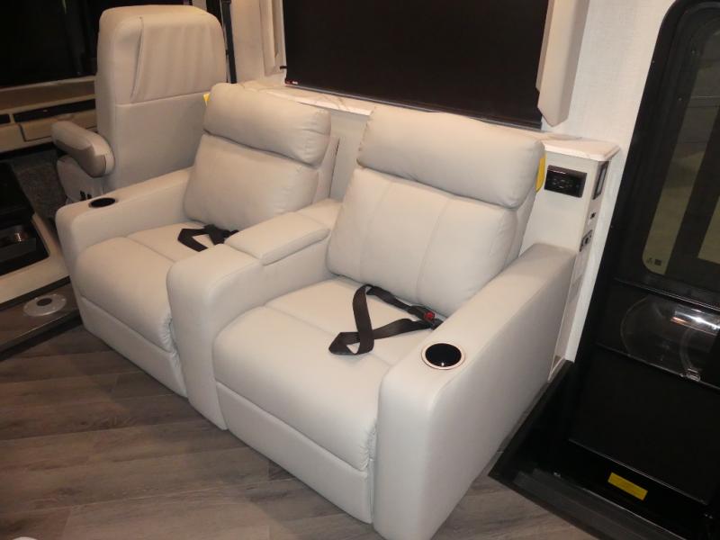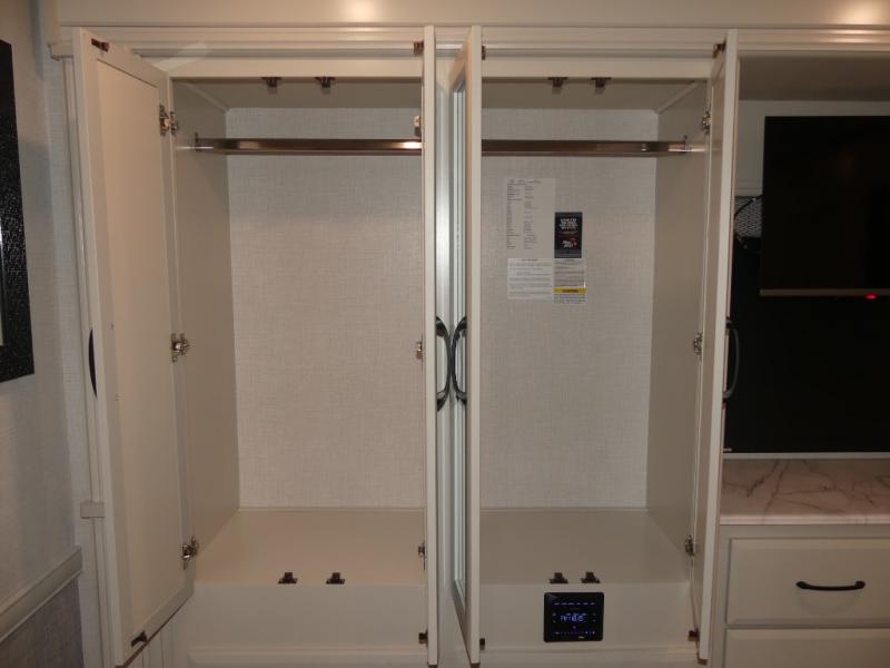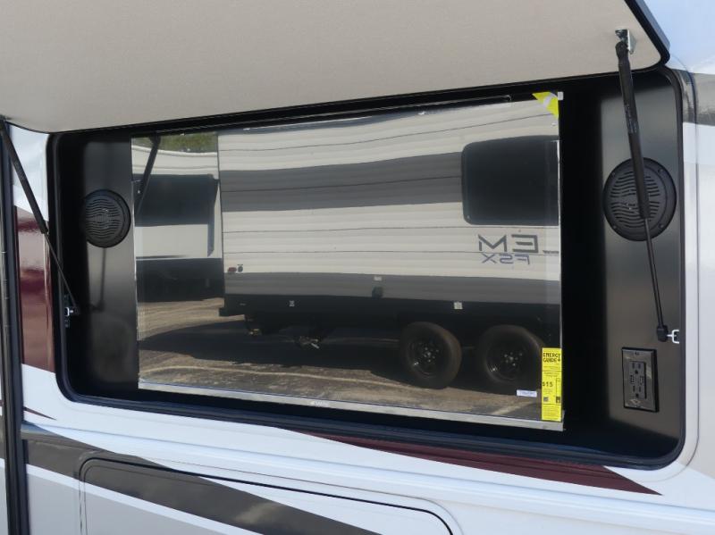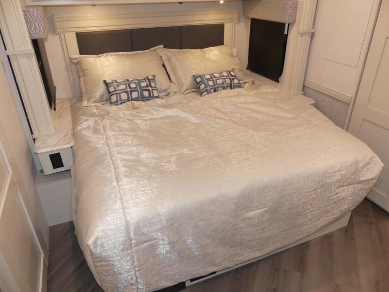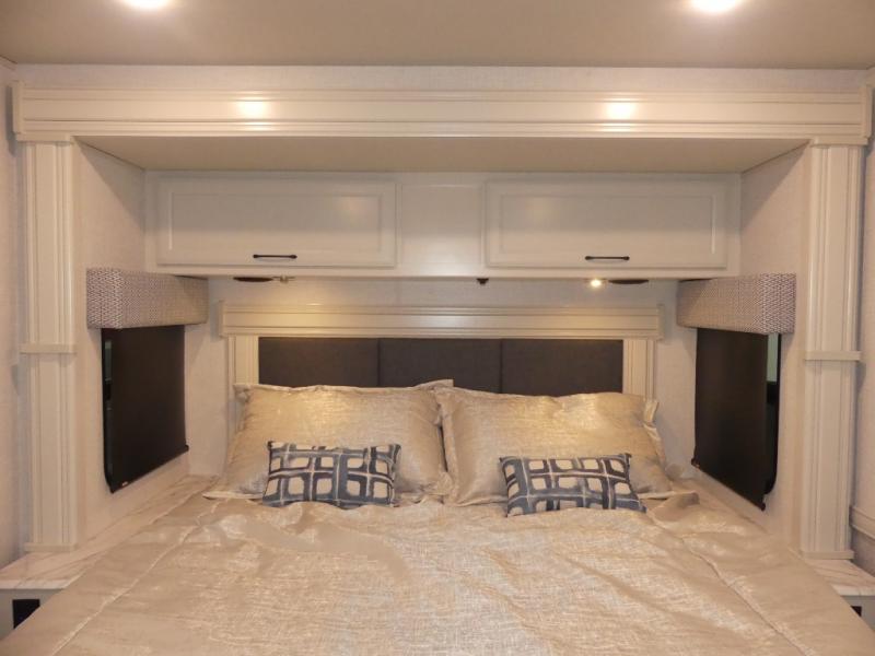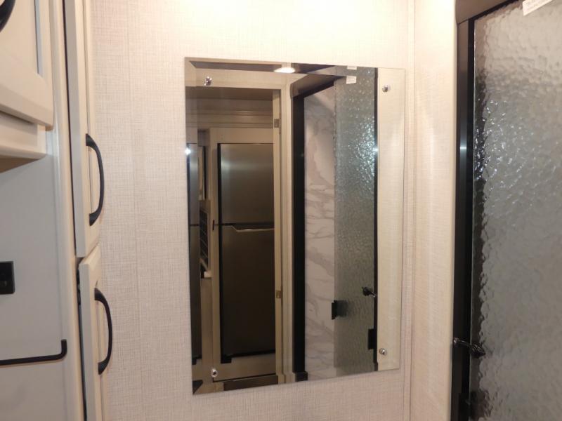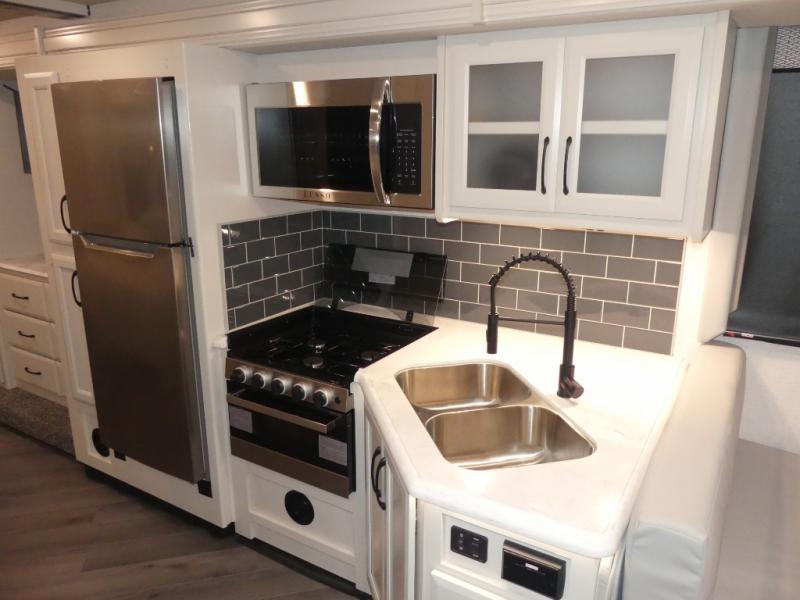 Traveling with friends and family has never been easier than in this spacious coach! You will find two slide outs plus two full baths for maximum convenience. The Serenity Series king bed will provide a great night's rest, while your guests take the Hide-A-Loft electric drop-down bed, and the Dream Dinette. Once everyone is ready for the day, head to the kitchen to prepare eggs and bacon on the three burner cooktop, or use the stainless steel over-the-range microwave oven if you're on the go. You'll also appreciate the pantry and stainless steel residential refrigerator for food storage, plus the double bowl stainless steel sink for easy clean up.