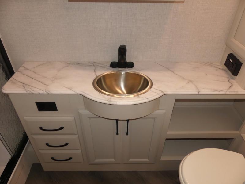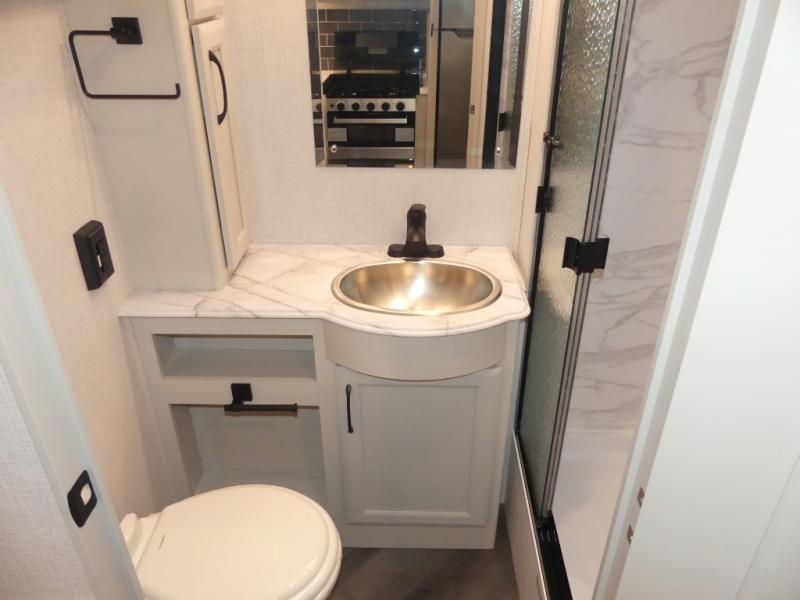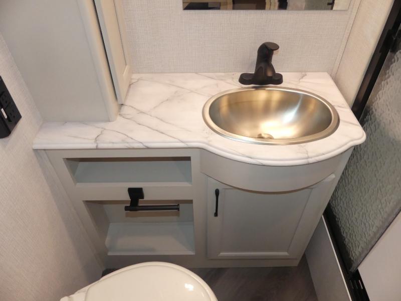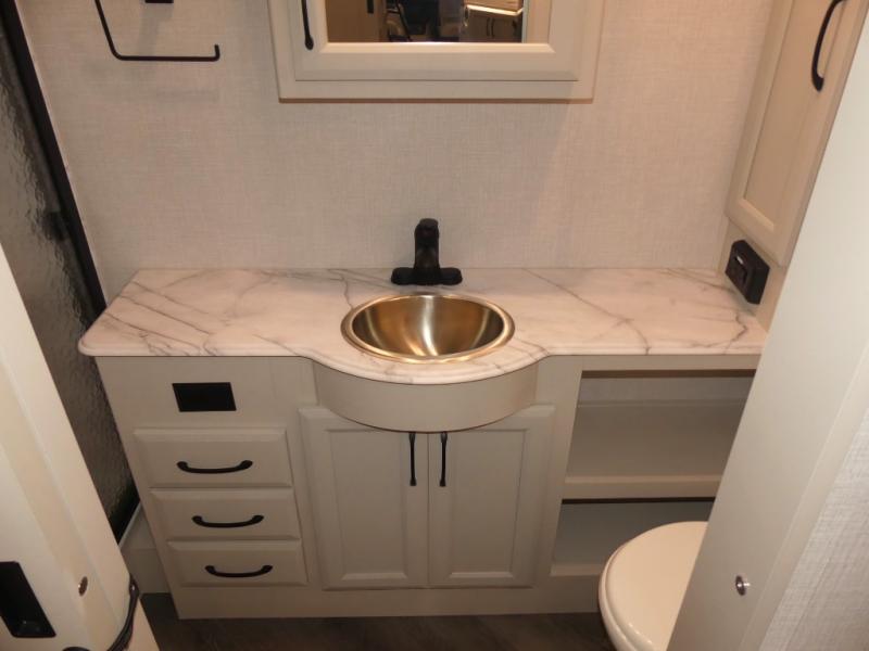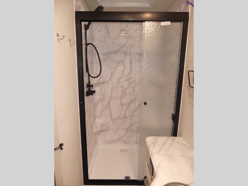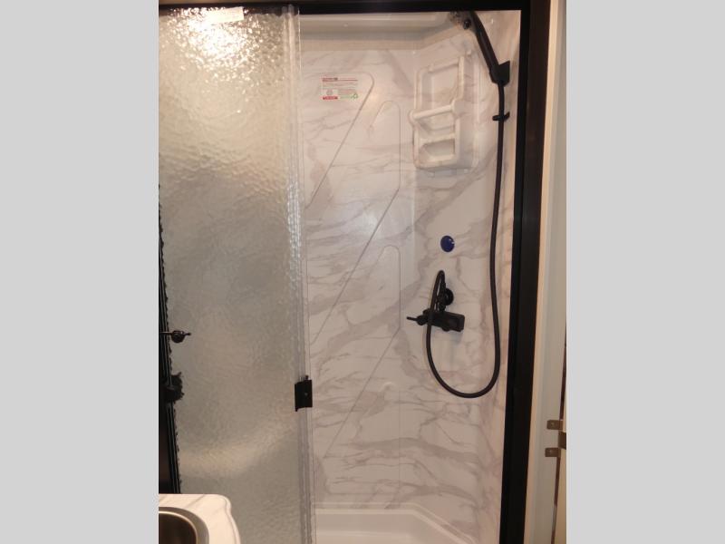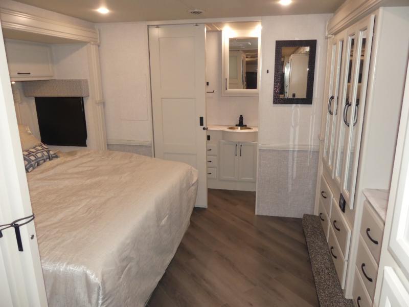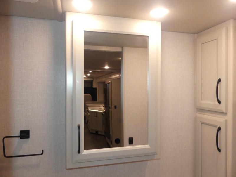 Traveling with friends and family has never been easier than in this spacious coach! You will find two slide outs plus two full baths for maximum convenience. The Serenity Series king bed will provide a great night's rest, while your guests take the Hide-A-Loft electric drop-down bed, and the Dream Dinette. Once everyone is ready for the day, head to the kitchen to prepare eggs and bacon on the three burner cooktop, or use the stainless steel over-the-range microwave oven if you're on the go. You'll also appreciate the pantry and stainless steel residential refrigerator for food storage, plus the double bowl stainless steel sink for easy clean up.