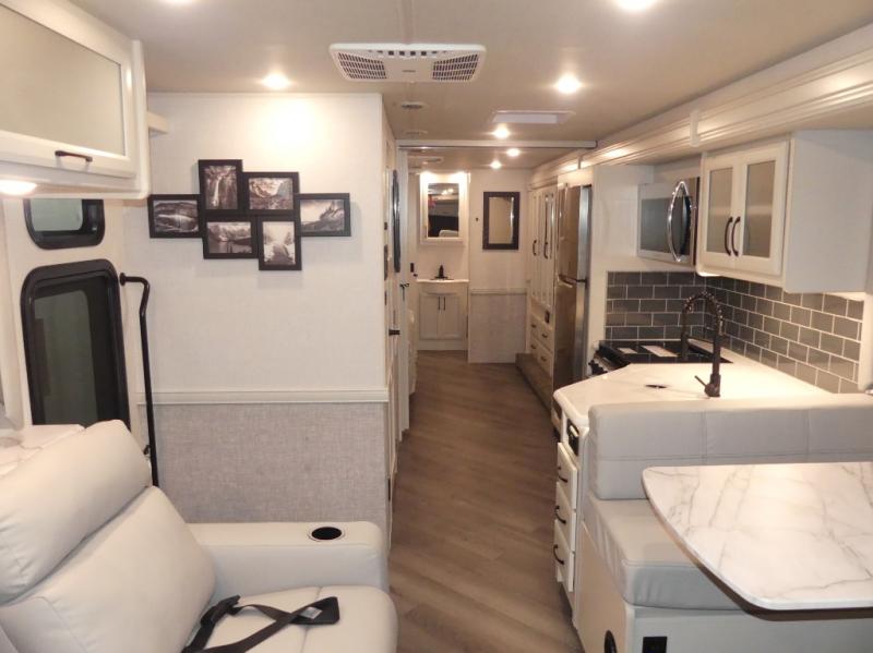 The Eclipse Class A gas motorhome by Holiday Rambler is packed with high-end features for an unforgettable RV experience. A 22,000 lb. chassis provides a strong foundation, and the Ford 7.3L V8 335HP engine will power your journeys near and far. You will love the smooth drive thanks to the tuned SACHS shocks and power assisted steering, and the full-body paint. The 10.1" capacitive touch screen stereo is sure to come in handy with its "always on" back-up camera, 2 USB ports, and two-zone speaker control, plus it includes built-in Bluetooth and is SiriusXM ready. You will enjoy the luxurious interior with vinyl tile flooring, stainless steel appliances, a glass shower door, plus a designer bedspread and pillows with shams. And don't overlook the exterior with its enclosed waste station, electric awning with LED lighting, automatic hydraulic leveling jacks, slide out awning toppers, and so much more!