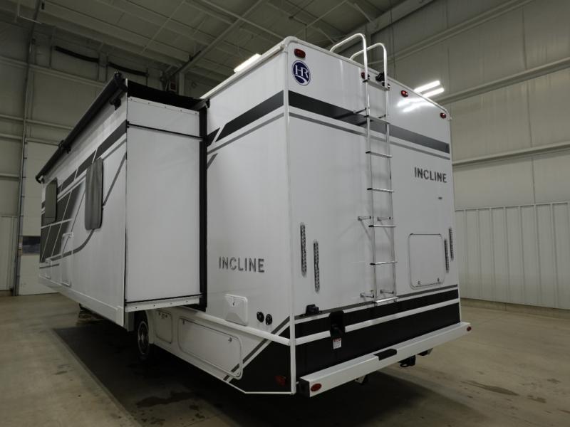 With any Incline Class C gas motorhome by Holiday Rambler, you will enjoy unrivaled performance, unbeatable storage, and luxury at every turn! You will love the journey just as much as the destination with reclining back and swivel captain's chairs and side view cameras, plus there is a Ford 7.3L V8 engine for power you can feel. Each model features painted steel frame construction with a Powerlock System ll that interlocks the walls to the roof for added durability, along with Vacu-Bond aluminum framed sidewalls, roof, and floor. Outside, you'll find automatic hydraulic leveling jacks, patio lighting, slam latch luggage door handles, and a Winegard Air 360+ that will allow you to stay connected as you travel. Head inside to find Surf-X countertops, slide out fascia with coordinating interior wood color, hidden hinge cabinet doors, kitchen backsplash, and many more comforts!