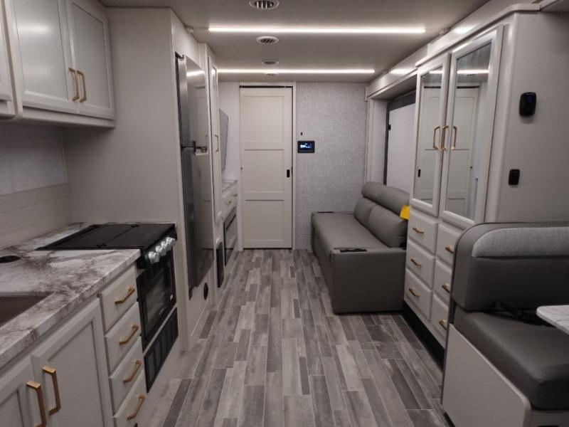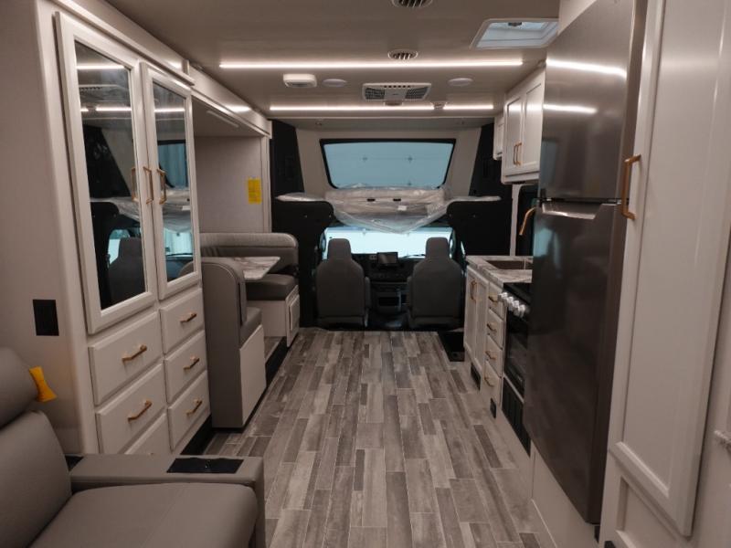 With any Incline Class C gas motorhome by Holiday Rambler, you will enjoy unrivaled performance, unbeatable storage, and luxury at every turn! You will love the journey just as much as the destination with reclining back and swivel captain's chairs and side view cameras, plus there is a Ford 7.3L V8 engine for power you can feel. Each model features painted steel frame construction with a Powerlock System ll that interlocks the walls to the roof for added durability, along with Vacu-Bond aluminum framed sidewalls, roof, and floor. Outside, you'll find automatic hydraulic leveling jacks, patio lighting, slam latch luggage door handles, and a Winegard Air 360+ that will allow you to stay connected as you travel. Head inside to find Surf-X countertops, slide out fascia with coordinating interior wood color, hidden hinge cabinet doors, kitchen backsplash, and many more comforts!