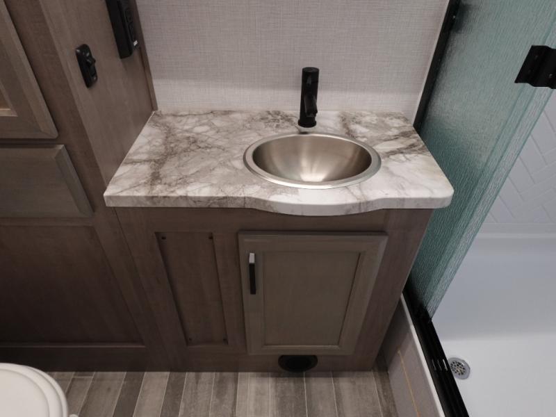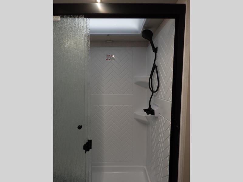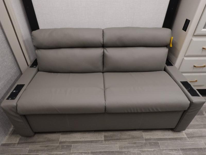 Pack your bags and head off on new adventures in this spacious coach! You will love gathering around the U-shaped dinette for a game or a meal, and the full-wall slide provides ample space to move around. An overhead bunk provides sleeping space for little ones or to be used as extra storage space. Since there is a queen Murphy bed, you will enjoy versatile seating and sleeping space, and the full rear bath will allow you to freshen up each day without having to use the camp's facilities. This model also includes a three burner range/convection microwave combo to cook meals on plus an exterior kitchen with a mini fridge, pull-out griddle, and storage when the weather is nice!