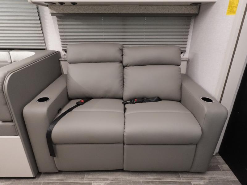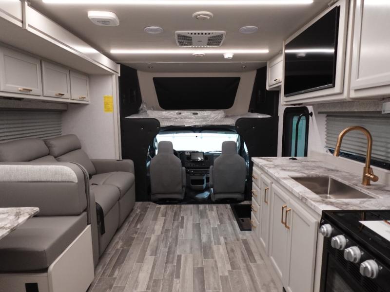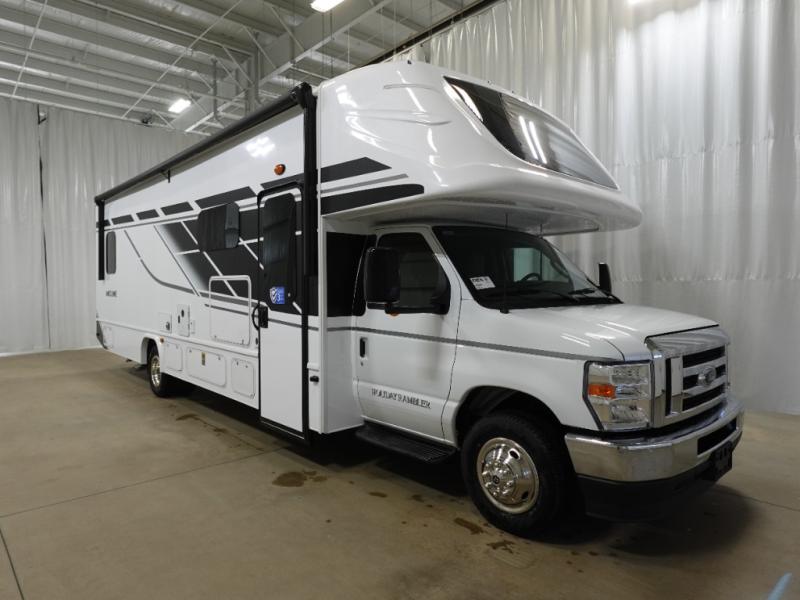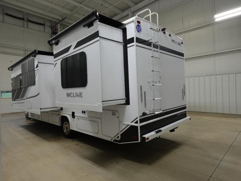 With any Incline Class C gas motorhome by Holiday Rambler, you will enjoy unrivaled performance, unbeatable storage, and luxury at every turn! You will love the journey just as much as the destination with reclining back and swivel captain's chairs and side view cameras, plus there is a Ford 7.3L V8 engine for power you can feel. Each model features painted steel frame construction with a Powerlock System ll that interlocks the walls to the roof for added durability, along with Vacu-Bond aluminum framed sidewalls, roof, and floor. Outside, you'll find automatic hydraulic leveling jacks, patio lighting, slam latch luggage door handles, and a Winegard Air 360+ that will allow you to stay connected as you travel. Head inside to find Surf-X countertops, slide out fascia with coordinating interior wood color, hidden hinge cabinet doors, kitchen backsplash, and many more comforts!