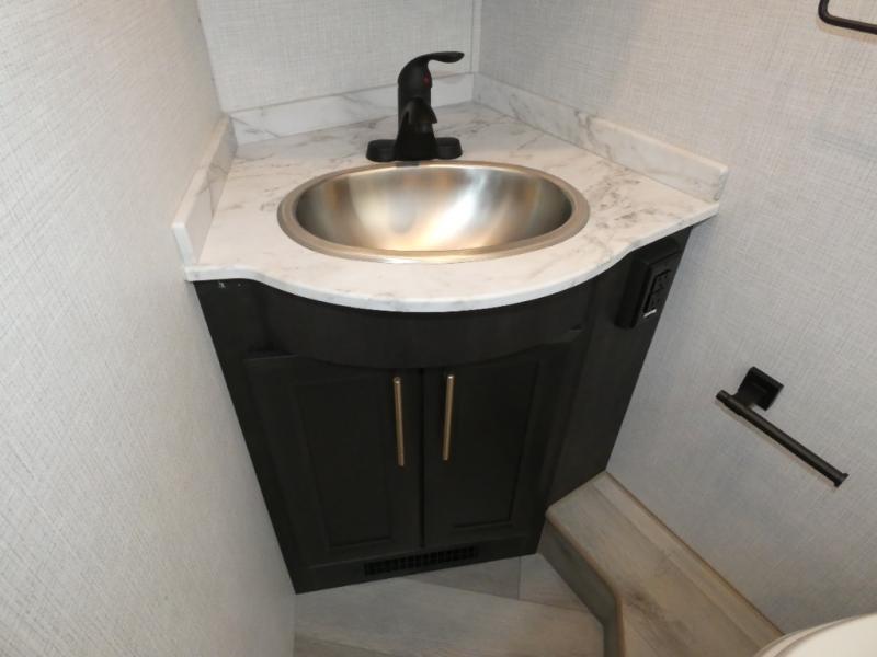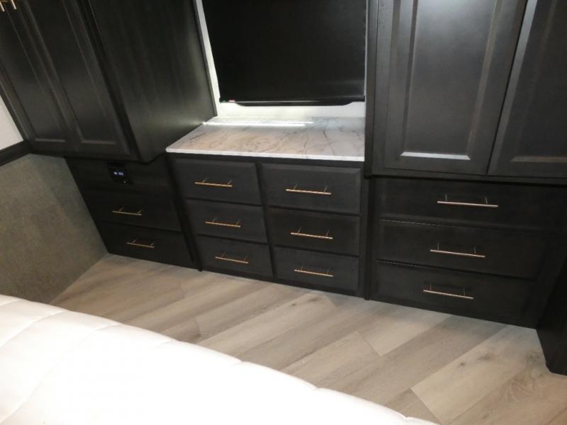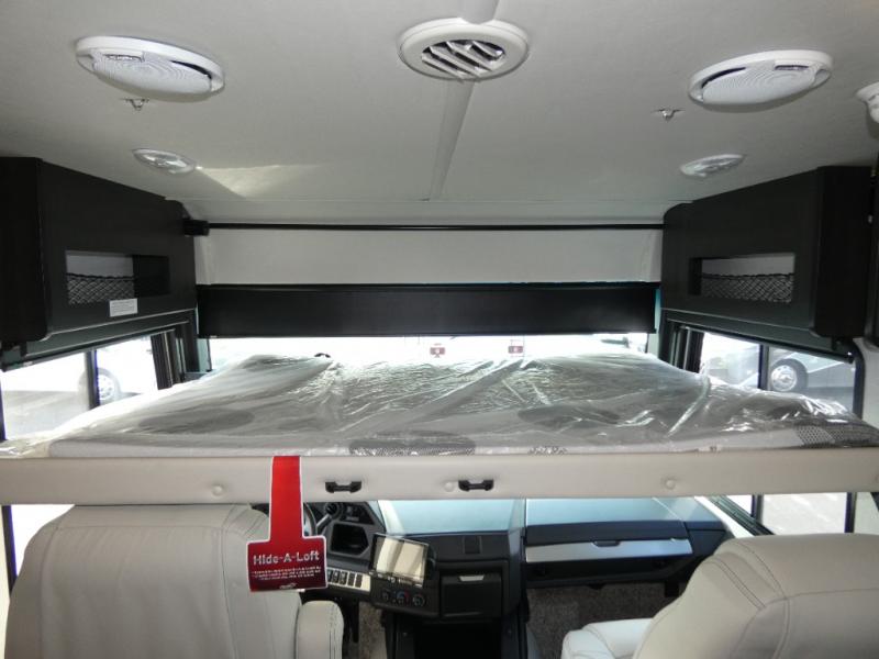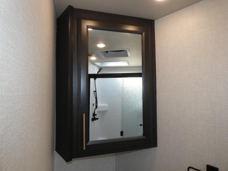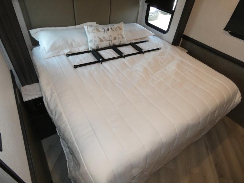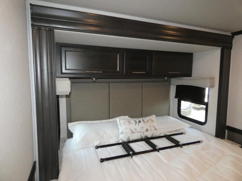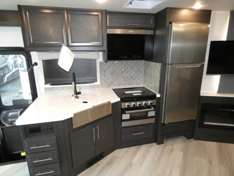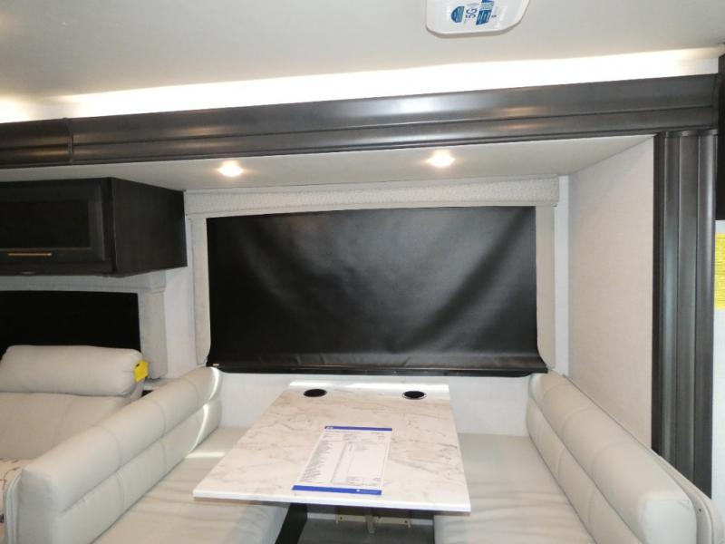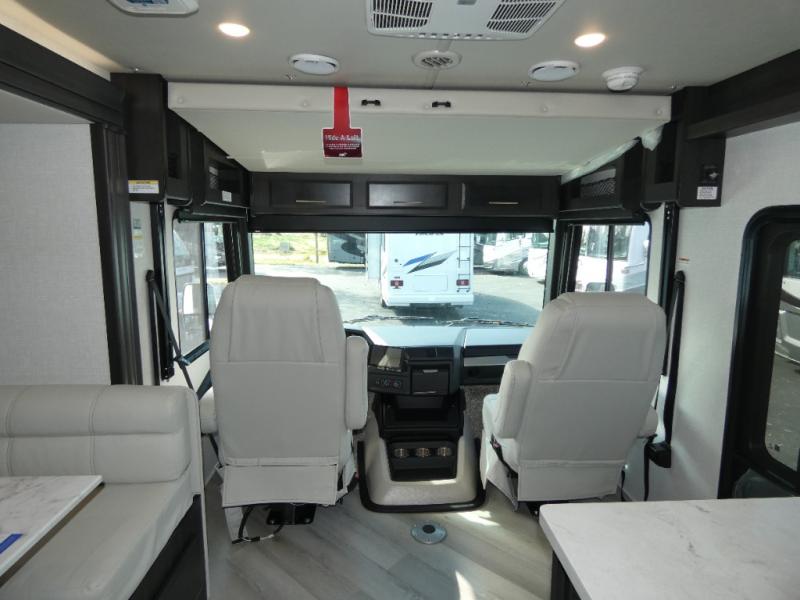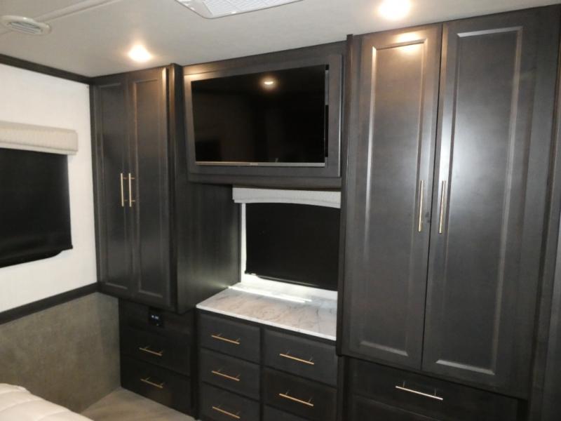 Start taking your best road trips in this motorhome! You will feel right at home sleeping in the rear private bedroom on the Serenity Series king bed slide with CPAP storage above it and a LED TV to watch movies in comfort, plus you have three wardrobes and a dresser for all of your clothes. Prepare your best home cooked meals with the three burner cooktop, store any leftovers in the stainless steel residential refrigerator, and pop a bag of popcorn in the stainless steel over- the-range convection microwave. Enjoy your meals in comfort at the Dream Dinette then play a card game, but if you're not one for games then you can relax on the theater seats across from the fireplace with a LED smart TV above it!