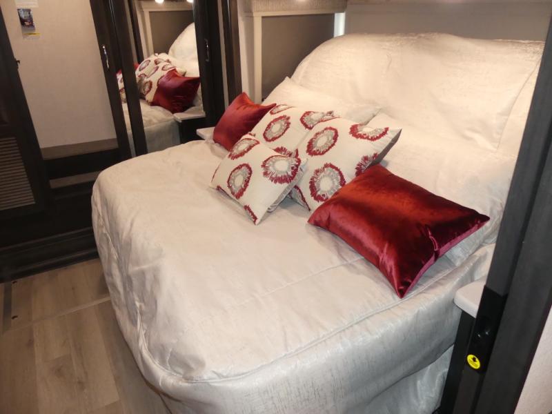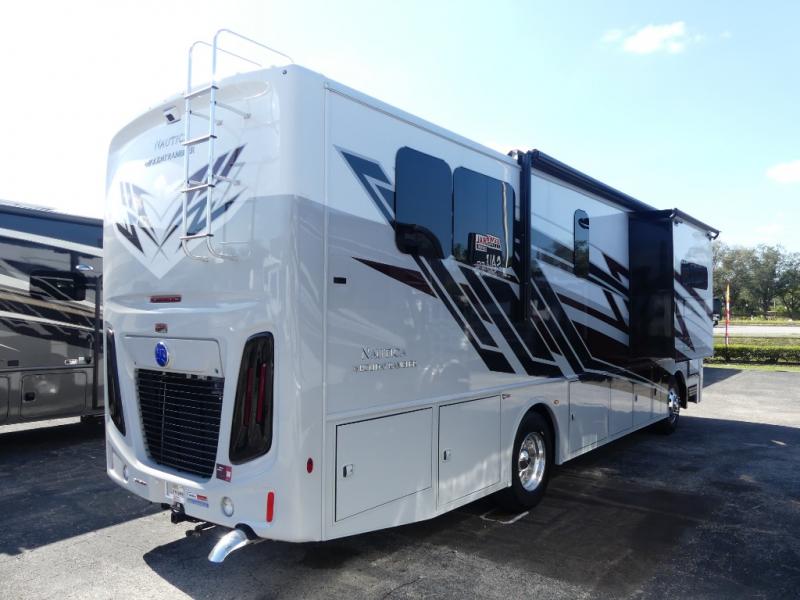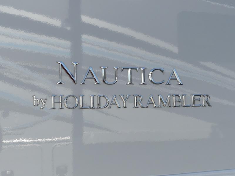 Surprise your family with the best and brightest Class A diesel motorhome on the market: the Holiday Rambler Nautica! These coaches come with a fantastic list of features that will surely provide you with RV living at its finest. The Freightliner custom chassis and Delta Bridge foundation is an amazing base that will provide you with more strength and power. Enjoy a safer, more stable driving experience with the LED Optiview instrument panel, electronic cruise control, and air suspension deflation system. There is also a color backup monitor to easily park at the campground, and automatic leveling jacks with touchpad controls to be set up in no-time! More construction and exterior features include the premium gel exterior vetrosina fiberglass skin, the vacu-bond aluminum-framed sidewalls, walls and floors, plus the Powerlock System 2 that interlocks the walls to the roof for added strength. The interior will feel more like a home with its coordinating window treatments, polished solid surface countertops, composite tile flooring, and spacious bedroom wardrobe with hardwood doors!