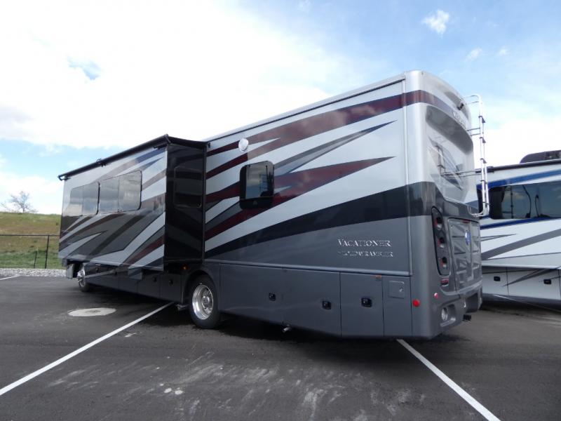 Escape the boring for fun trips in a Vacationer Class A gas motorhome by Holiday Rambler. You can easily make this coach your home-away-from home with features such as dual A/C units, vinyl tile flooring, and stainless steel appliances. The bus-style luggage doors will make for easy unloading, and the automatic hydraulic leveling jacks make setting up camp easier than ever. The Vacationer is constructed with a Powerlock System with interlocking floor, walls, and roof, plus premium gel exterior Vetrosina fiberglass skin with no wood substrate for added durability. Each model includes an automotive style dash with dual monitors, and MultiPlex house controls that can easily be controlled by your smart phone or tablet. The list of standard features doesn't stop there. You'll have an environmentally friendly 100W solar panel, an exterior entertainment center, large holding tank capacities, and so much more!