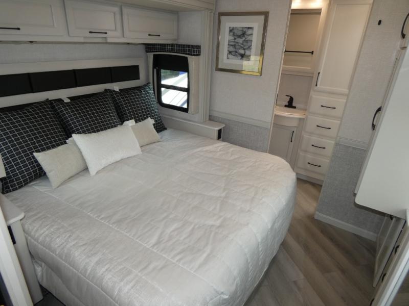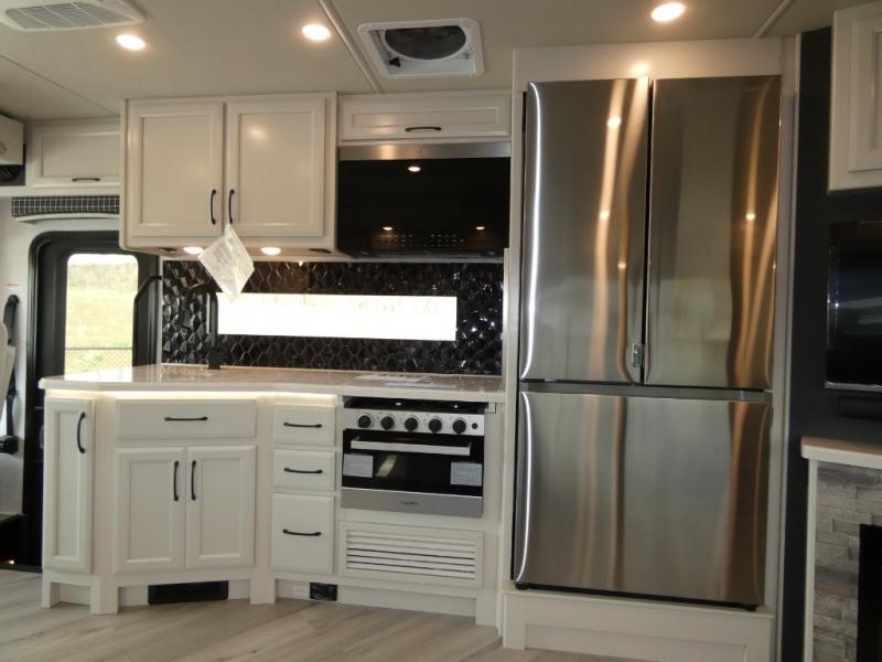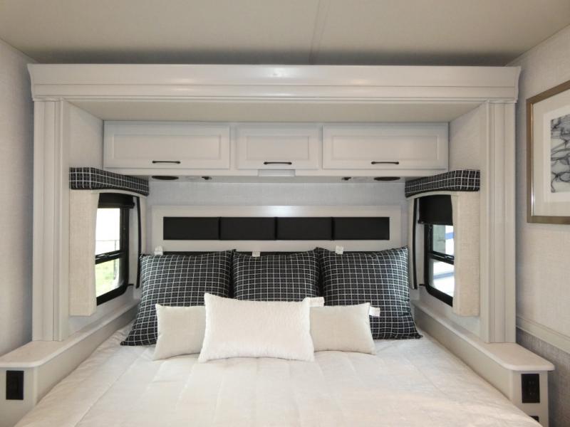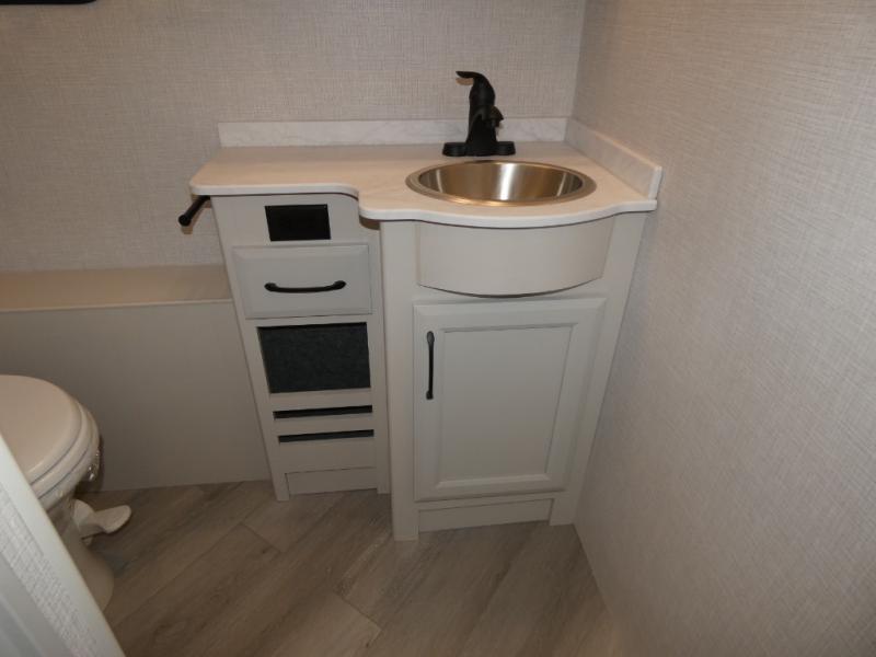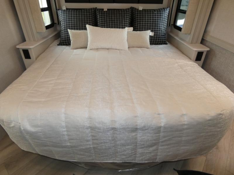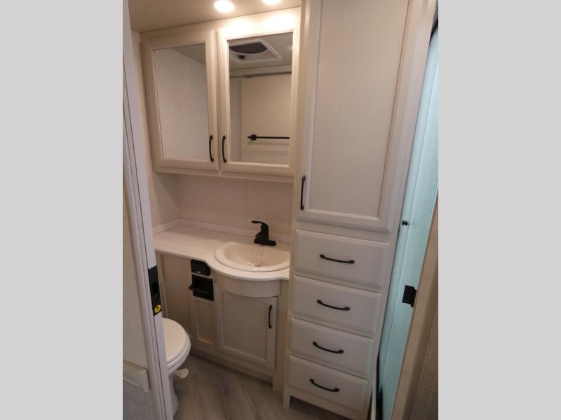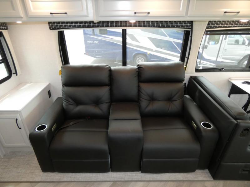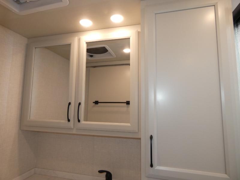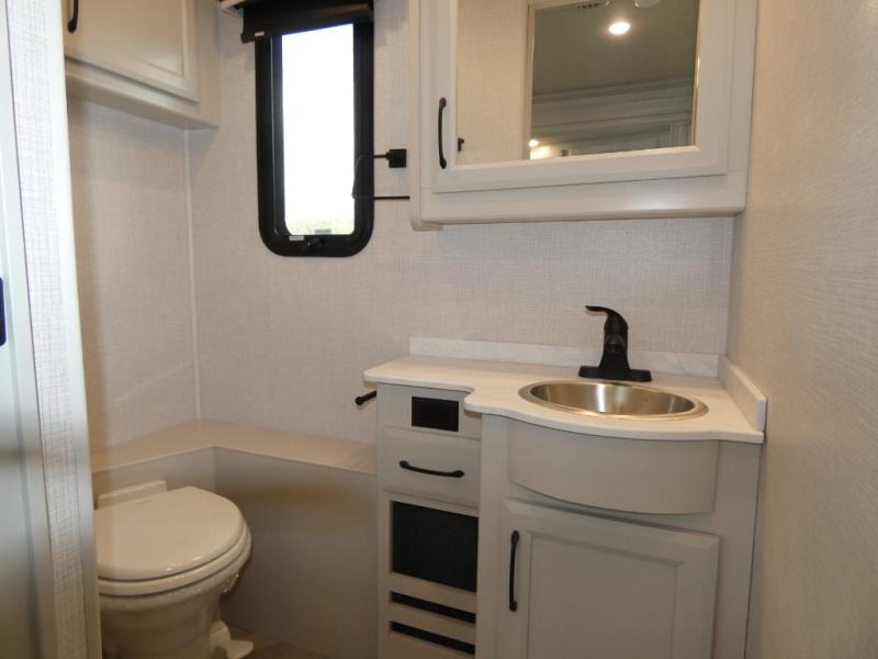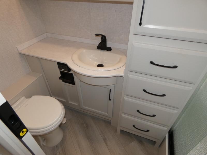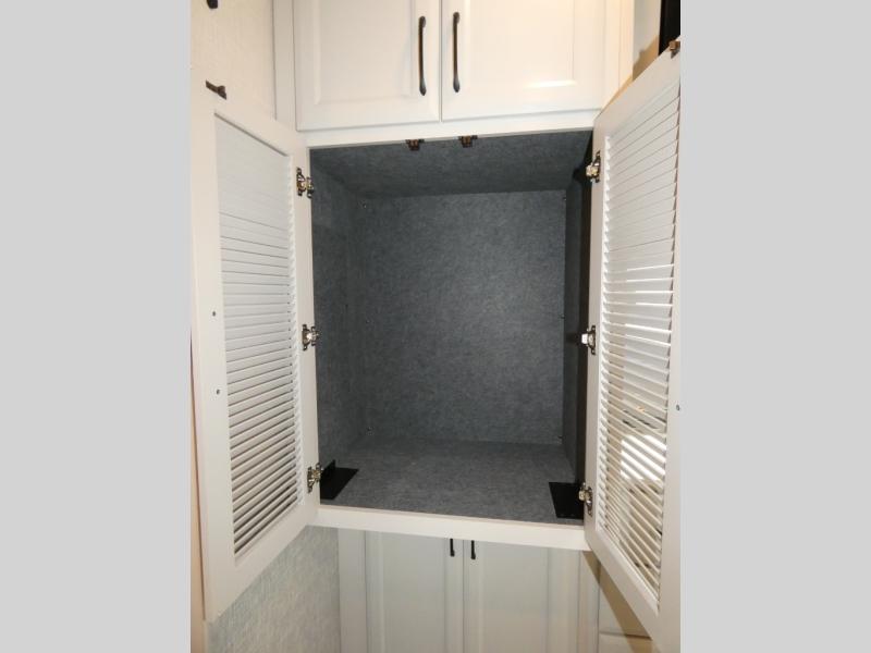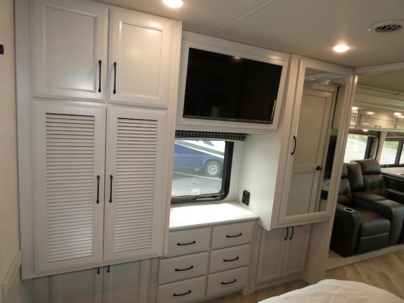 Traveling with a larger group is easier than ever in this coach with a bath and a half, two slides, plus sleeping space for five. And you can use the Hide-A-Loft drop-down overhead bunk if you have more guests tag along! You can make breakfast in the morning on the three burner cooktop, or use the convection microwave provided. Your crew can dine at the Rest EZ booth dinette and relax on the theater seats before heading out for the day. This model also includes a master bedroom with its own LED TV, dual bedroom wardrobes, plus a king bed slide out with storage space for a CPAP if needed. This model has a GVWR of 22,000 lbs., but is also available with a GVWR of 24,000 lbs.; see dealer for more details!