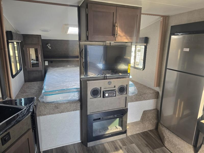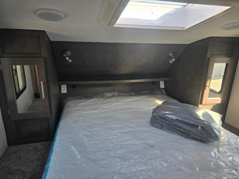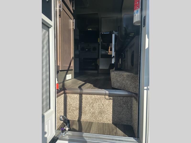 This truck camper is perfect for your short bed truck. There is a rear entry for great views when exiting the camper, an L-shaped dinette to dine at which also offers extra sleeping space for your kids or friends, and a galley kitchen is located on the opposite side allowing you to cook while away. You will enjoy the queen bed all to yourselves and can even add an optional TV if you like to watch movies in bed. And the full bathroom gives you privacy when changing and getting cleaned up. There are options to choose from to enhance this already amazing camper such as adding an optional fireplace or choosing a king bed in place of the queen bed.