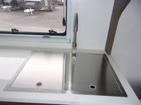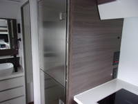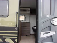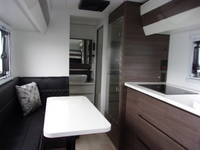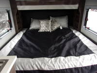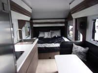 Make each camping trip count in this travel! When you get to your destination you can unload your gear from the exterior pass-through storage, then set up the 22' 6" batwing style awning. There is a full kitchen with a cooktop inside to prepare lunch on, plus a 6.9 cu. ft. refrigerator for food storage and a sink to clean up. Head out to find a trail or two, then come back to clean up in the full rear bath that includes a shower and a dry flush toilet, which eliminates the need for a black tank. The full size walk-around bed (RV full) will provide a great night's rest, and there is overhead storage space on each side of the bed for convenience.