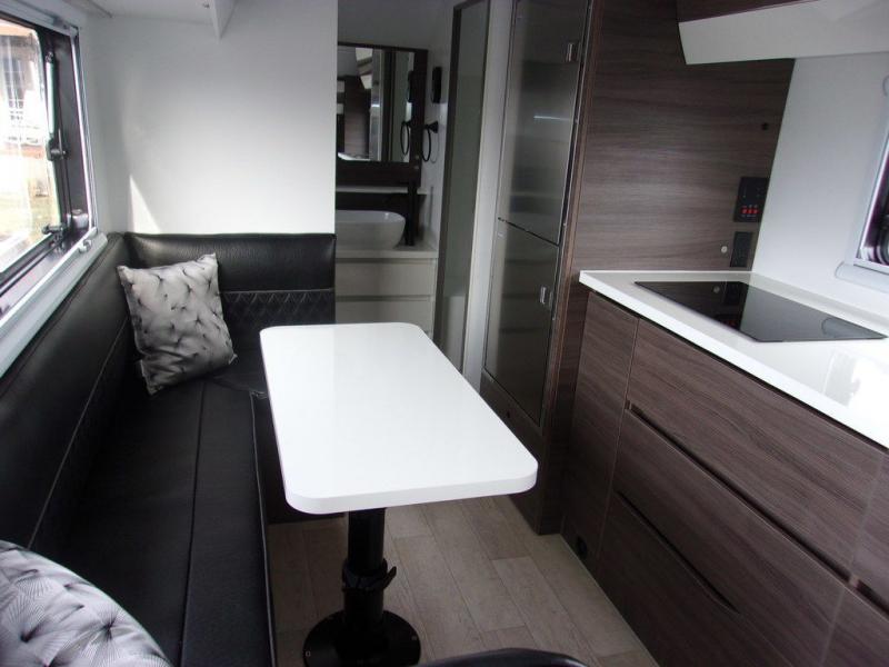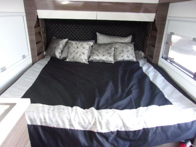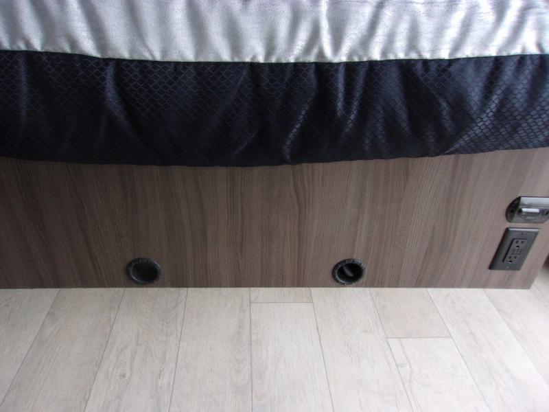 Make each camping trip count in this travel! When you get to your destination you can unload your gear from the exterior pass-through storage, then set up the 22' 6" batwing style awning. There is a full kitchen with a cooktop inside to prepare lunch on, plus a 6.9 cu. ft. refrigerator for food storage and a sink to clean up. Head out to find a trail or two, then come back to clean up in the full rear bath that includes a shower and a dry flush toilet, which eliminates the need for a black tank. The full size walk-around bed (RV full) will provide a great night's rest, and there is overhead storage space on each side of the bed for convenience.