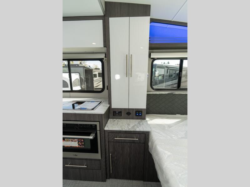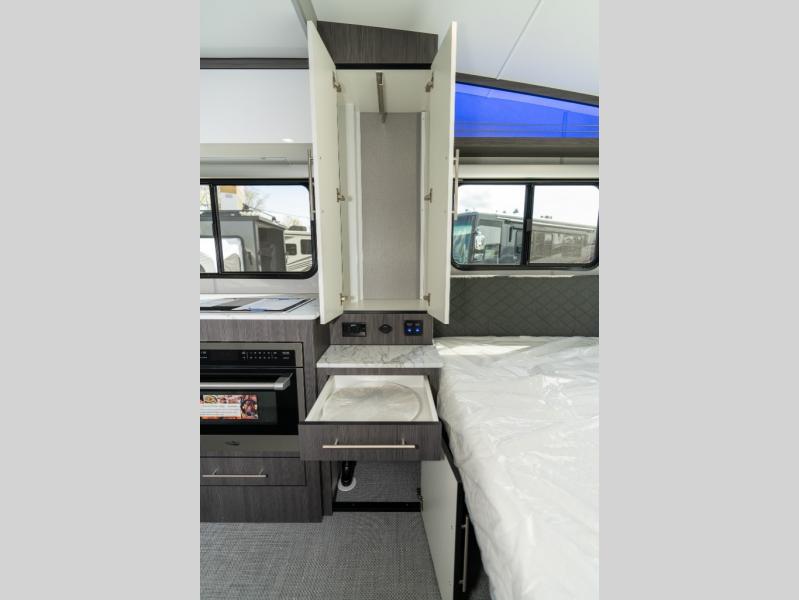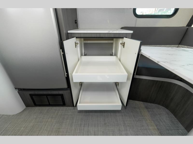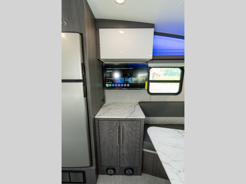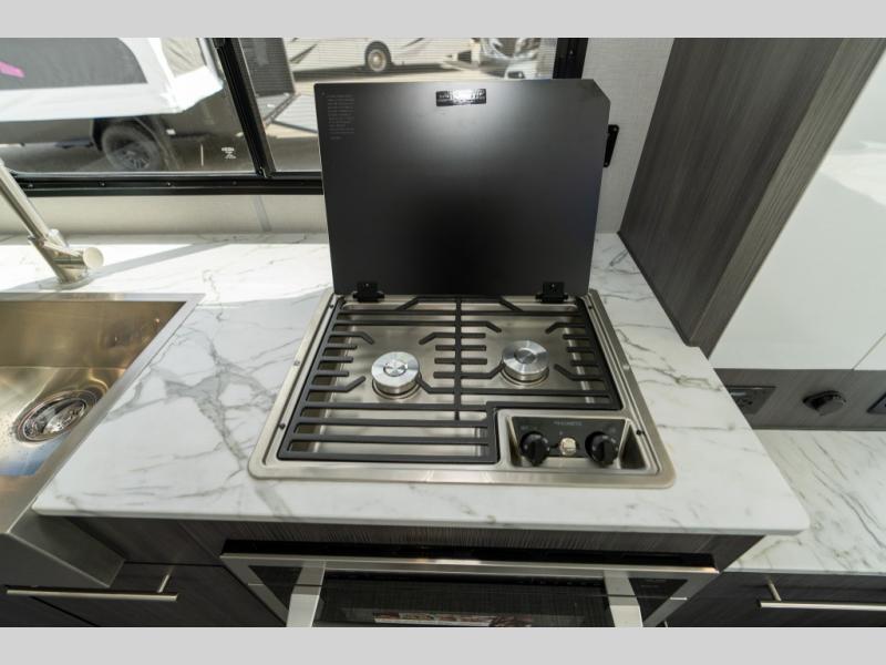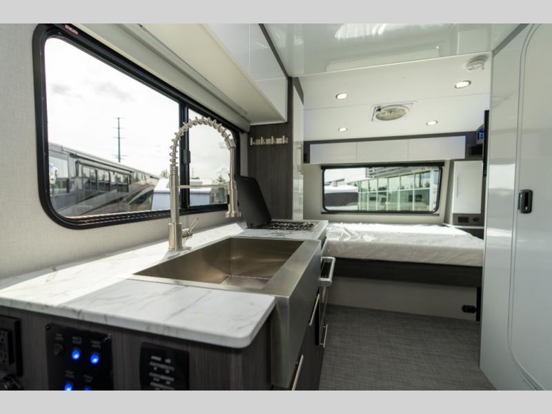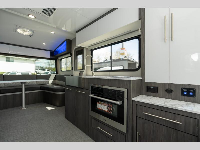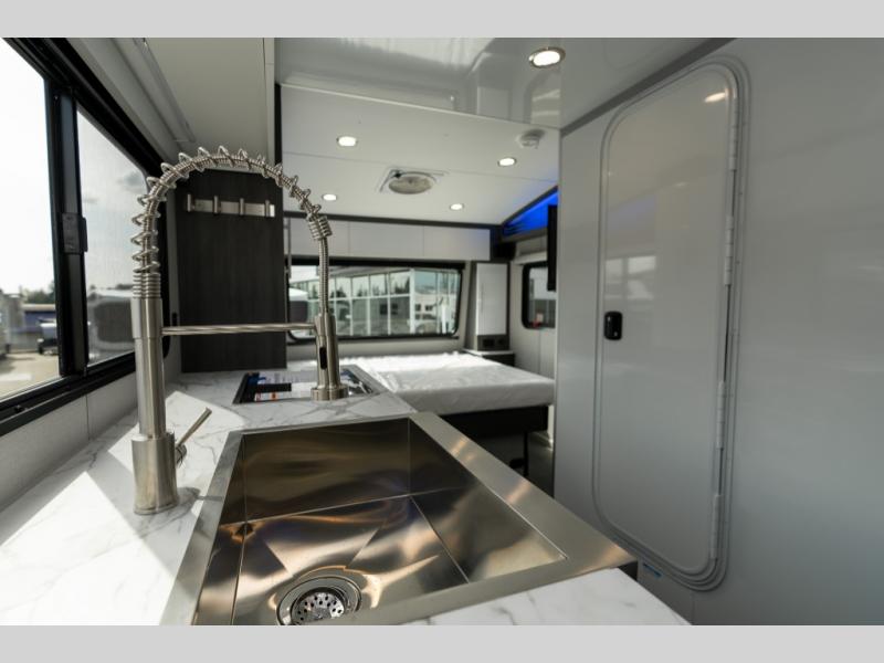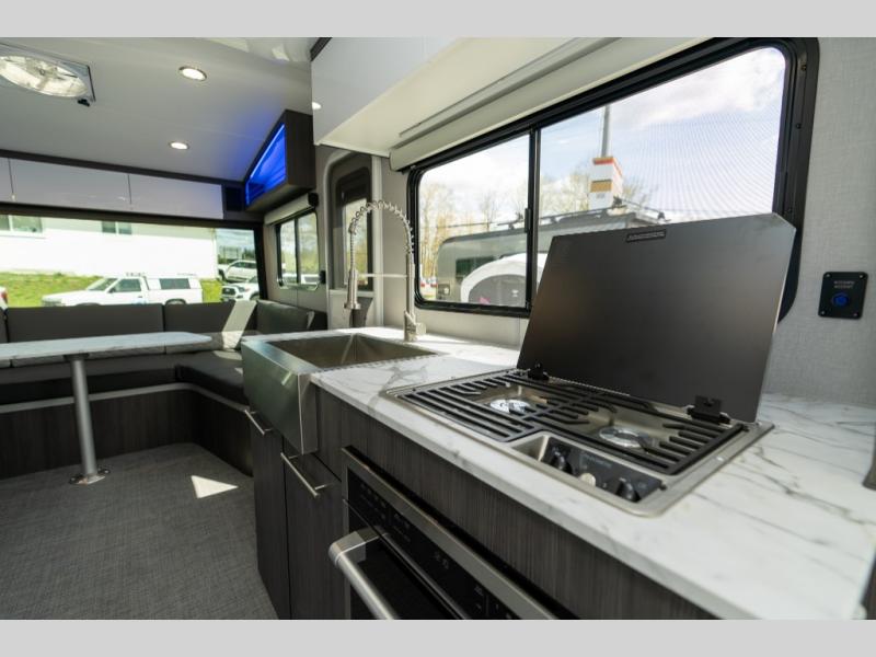 With any Aucta travel trailer by inTech RV you will enjoy creative interior spaces, luxury features, and smart storage spaces for a one-of-a-kind trailer. The one-piece fiberglass roof, all-aluminum cage frame, and Dexter torsion axle provide durable construction and smooth towing, and the fold-away double entry steps and power tongue jack will make set-up easier than ever. Inside, you'll find Infinity woven flooring, a large farmhouse sink, USB ports and 120V outlets, plenty of storage compartments, and MaxxAir vent fans to keep everything fresh. These models also include bubble foil insulation in the walls and ceiling, along with a 25K BTU furnace and a 15K BTU A/C so you can make memories year around!