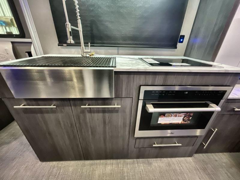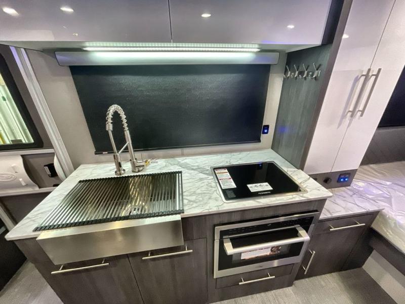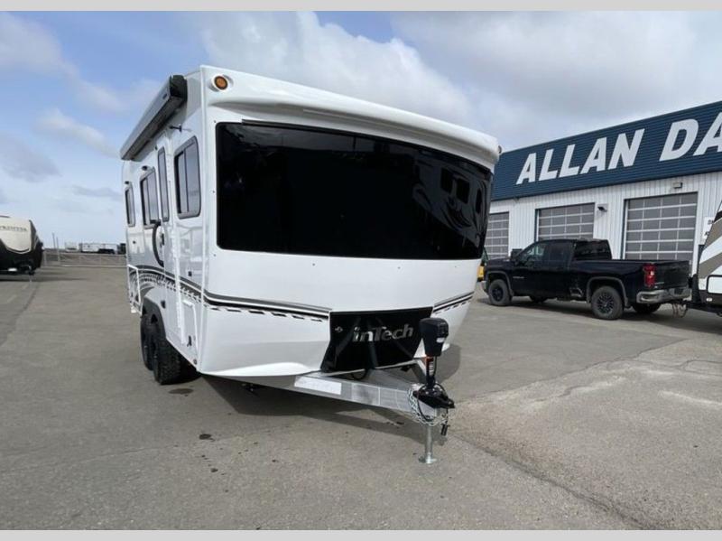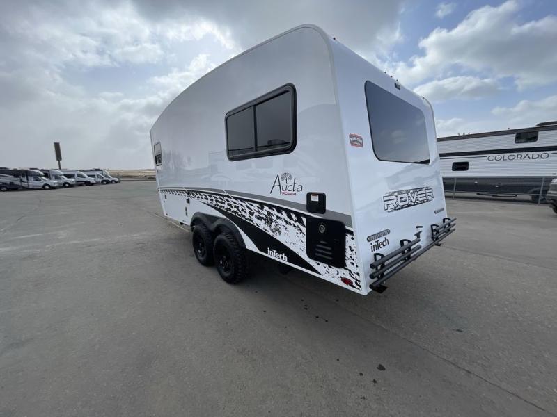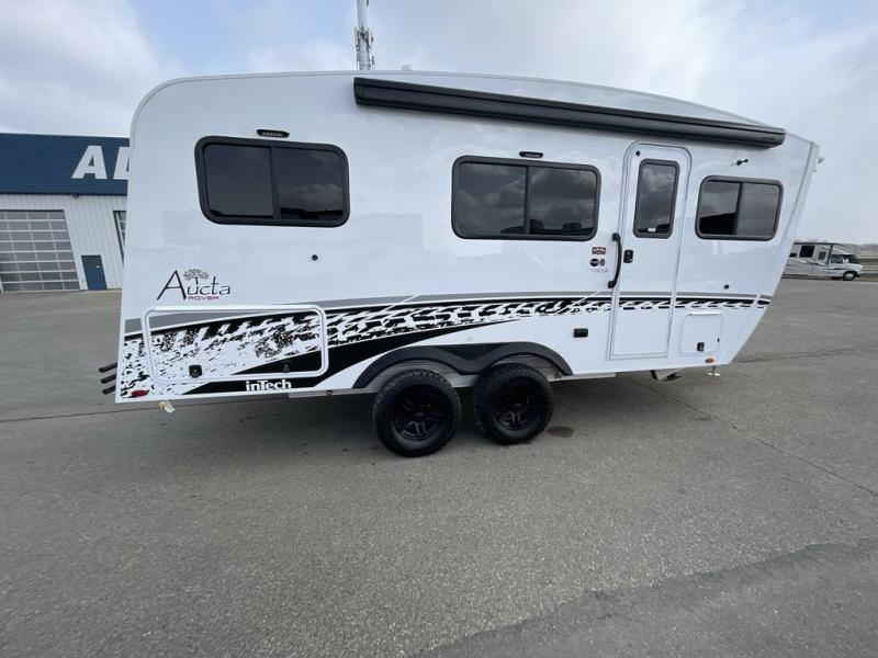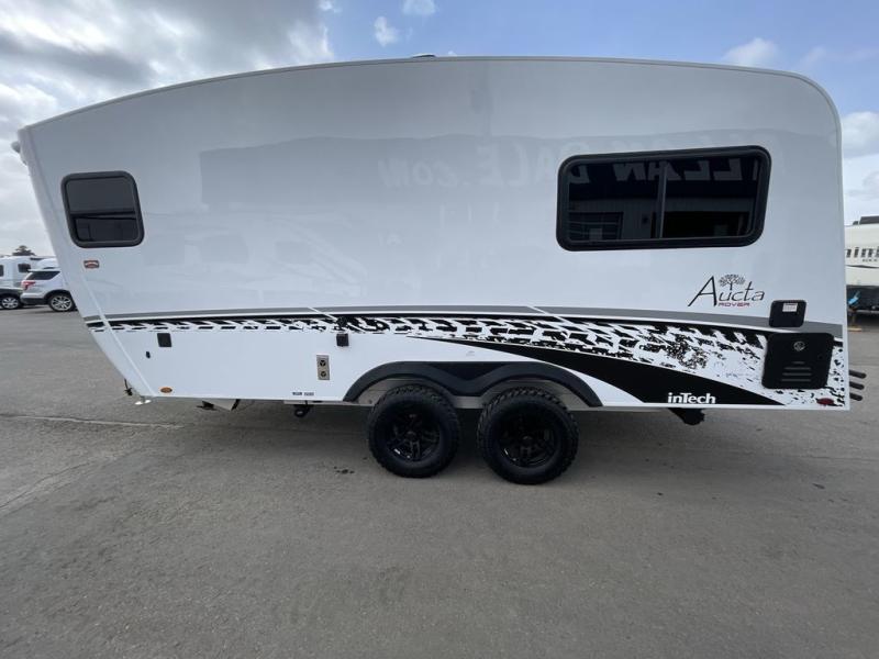 With any Aucta travel trailer by inTech RV you will enjoy creative interior spaces, luxury features, and smart storage spaces for a one-of-a-kind trailer. The one-piece fiberglass roof, all-aluminum cage frame, and Dexter torsion axle provide durable construction and smooth towing, and the fold-away double entry steps and power tongue jack will make set-up easier than ever. Inside, you'll find Infinity woven flooring, a large farmhouse sink, USB ports and 120V outlets, plenty of storage compartments, and MaxxAir vent fans to keep everything fresh. These models also include bubble foil insulation in the walls and ceiling, along with a 25K BTU furnace and a 15K BTU A/C so you can make memories year around!