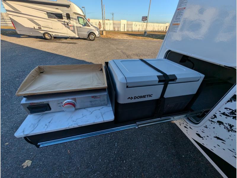 Pack your bags for a new adventure in this Willow travel trailer. You and your spouse or camping friend will love the natural light that streams in from the panoramic windows as you relax on the U-shaped dinette. Prepare meals each day on the two burner stainless steel cooktop or use the convection microwave, and you'll find plenty of overhead cabinets for all your necessities. This model features a private toilet and sink, with the shower right across the hall so two people can freshen up at once. When it's time to call it a night, you can rest comfortably on the walk-around queen bed, and the 32" bedroom TV will allow you to watch a late-night movie in bed! If you like to have your own space at night, just choose the optional twin beds! This model also has a dry weight that ranges from 5,650-5,850 lbs., a tongue weight between 725-790 lbs., and a carrying capacity between 1,650-1,850 lbs. You may also like to choose the optional Rover Package that includes a 3" lift, an aluminum tube rear bumper, rugged decals, and more!