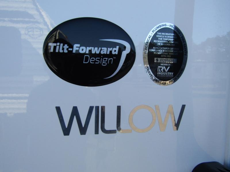 Pack your bags for a new adventure in this Willow travel trailer. You and your spouse or camping friend will love the natural light that streams in from the panoramic windows as you relax on the U-shaped dinette. Prepare meals each day on the two burner stainless steel cooktop or use the convection microwave, and you'll find plenty of overhead cabinets for all your necessities. This model features a private toilet and sink, with the shower right across the hall so two people can freshen up at once. When it's time to call it a night, you can rest comfortably on the twin beds, and the 32" bedroom TV will allow you to watch a late-night movie in bed! This model also has a dry weight that ranges from 5,650-5,850 lbs., a tongue weight between 725-790 lbs., and a carrying capacity between 1,650-1,850 lbs. This unit has the optional Rover Package that includes a 3" lift, an aluminum tube rear bumper, rugged decals, and more!