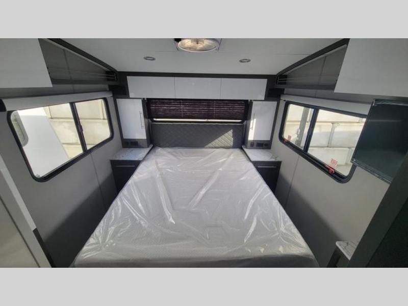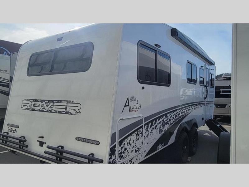 With any Aucta travel trailer by inTech RV you will enjoy creative interior spaces, luxury features, and smart storage spaces for a one-of-a-kind trailer. The one-piece fiberglass roof, all-aluminum cage frame, and Dexter torsion axle provide durable construction and smooth towing, and the fold-away double entry steps and power tongue jack will make set-up easier than ever. Inside, you'll find Infinity woven flooring, a large farmhouse sink, USB ports and 120V outlets, plenty of storage compartments, and MaxxAir vent fans to keep everything fresh. These models also include bubble foil insulation in the walls and ceiling, along with a 25K BTU furnace and a 15K BTU A/C so you can make memories year around!
