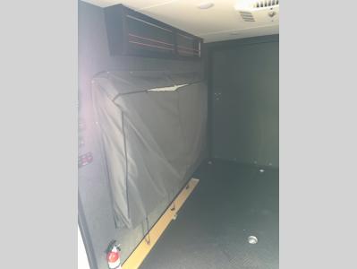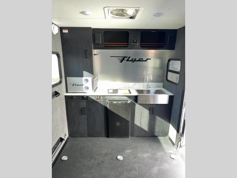 This Flyer expandable toy hauler is perfect for all your outdoor adventure! Not only does this toy hauler provide you with a spacious and versatile interior, but it also gives you a desirable cargo space so that you can bring along some toys for the adventure. This expandable comes standard with one tip-out bed, but you can easily add on the second optional tip-out bed which will add lots of extra room for sleeping and relaxing. The other feature found on this Flyer that is going to make your trips truly effortless is the front kitchen that comes with a two-burner stainless steel cooktop, a 3.1-cubic foot refrigerator, a large farmhouse sink, and an 8.5-gallon fresh water tank. This expandable toy hauler has a dry weight and net carrying capacity that ranges from 2,440-2,760 LBS.