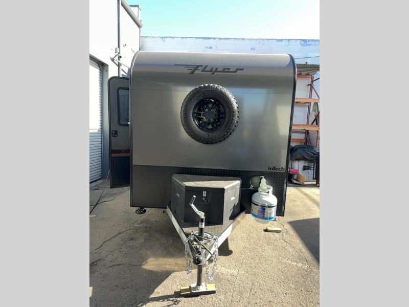 The inTech RV Flyer travel trailers and toy hauler expandables are ready for adventure whenever you are! With the all-aluminum, all-tube cage frame, the Flyer has been built with lightweight and long-lasting materials so that you can enjoy your unit for many, many years. The Flyer has a rugged design so that you can confidently explore new territory and go where traditional RVs cannot. The Flyer has a 2" rear receiver rated for 175 pounds which allows you to bring along your bikes, and the Bluetooth stereo has two speakers you can always have your best music playing. The optional roof rack will allow you to bring along kayaks, and there are more available options depending on the model you choose.