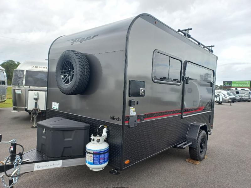 The inTech RV Flyer Discover is a compact yet rugged teardrop camper designed for adventurers seeking versatility and comfort on the road. With its lightweight construction and aerodynamic design, it's easily towable by a variety of vehicles, making it perfect for spontaneous getaways or extended travels. Inside, the Discover offers a cozy sleeping area for two and a fully equipped kitchenette, providing all the essentials for comfortable camping. Built with durable materials and featuring off-road tires and heavy-duty suspension, it's ready to tackle rough terrain with ease. The inTech RV Flyer Discover offers a convenient and enjoyable camping experience for outdoor enthusiasts.