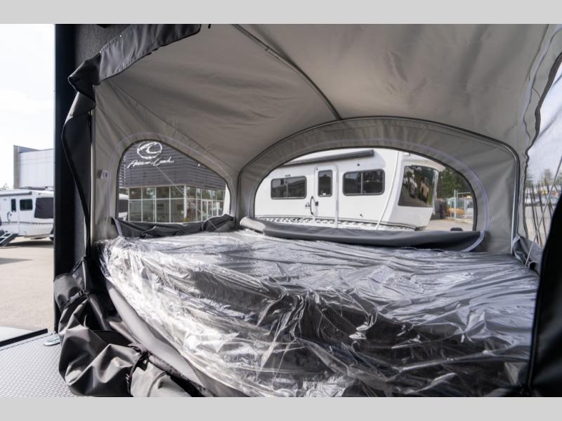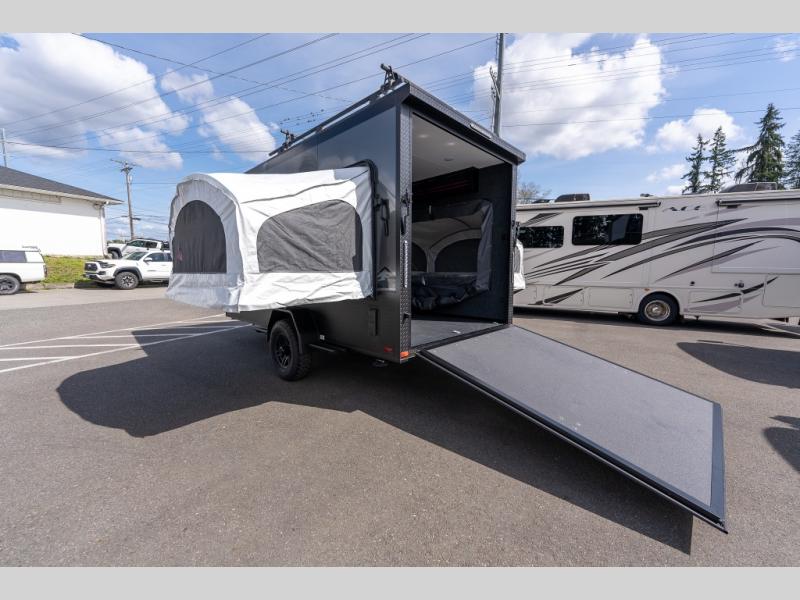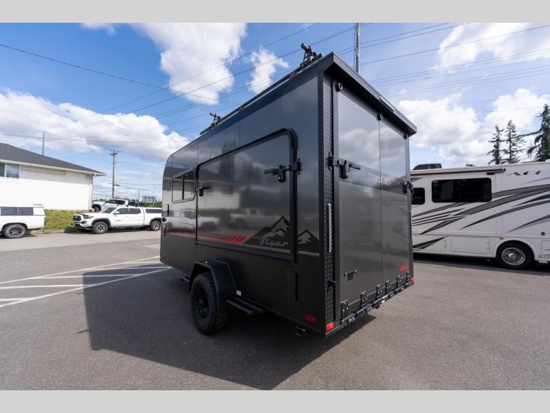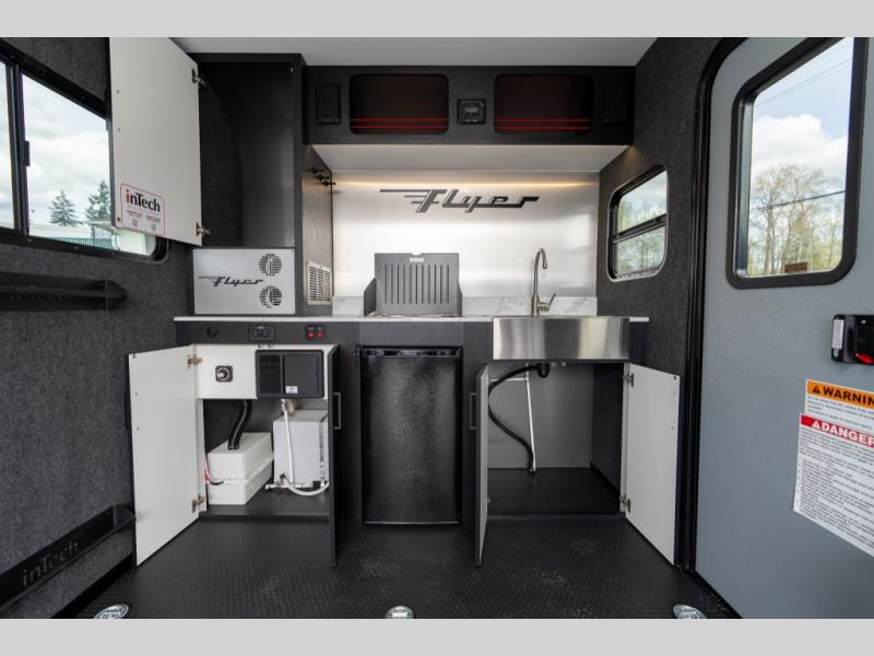 The inTech RV Flyer travel trailers and toy hauler expandables are ready for adventure whenever you are! With the all-aluminum, all-tube cage frame, the Flyer has been built with lightweight and long-lasting materials so that you can enjoy your unit for many, many years. The Flyer has a rugged design so that you can confidently explore new territory and go where traditional RVs cannot. The Flyer has a 2" rear receiver rated for 175 pounds which allows you to bring along your bikes, and the Bluetooth stereo has two speakers you can always have your best music playing. The optional roof rack will allow you to bring along kayaks, and there are more available options depending on the model you choose.