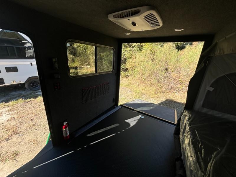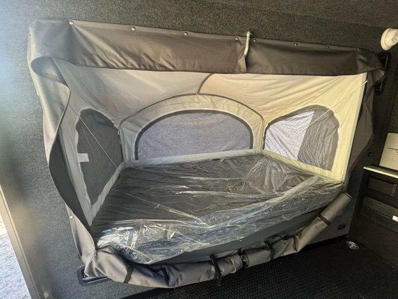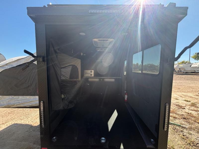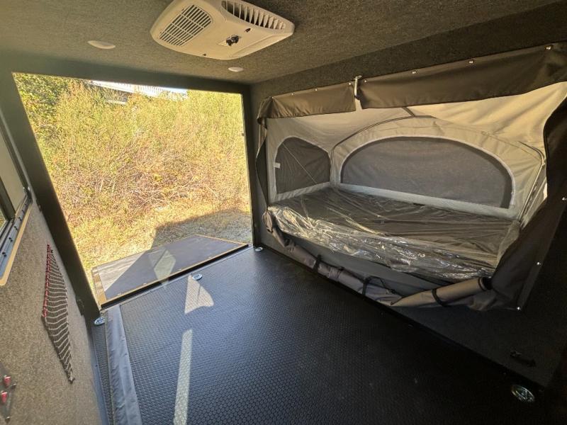 Not only is this Flyer toy hauler built to go where most traditional RVs cannot, but it is also built with a standard rear ramp or optional double rear doors, and six tie-down rings so that it can also serve as the perfect cargo transport too! The interior is spacious with its 46" x 81" tip-out bed, and if you add the second optional tip-out bed, you'll have an amazing amount of space on the inside. This expandable toy hauler is very functional, but you can make it even more enticing by adding optional Adventure Package that comes with an A/C, off-road tires, a roof rack, plus a slide out kitchen! This will allow you to cook wherever you choose to camp. The dry weight for this unit ranges from 1,580-2,110 LBS, the tongue weight ranges from 250-485 LBS, and the net carrying capacity ranges from 880-1,410 LBS.