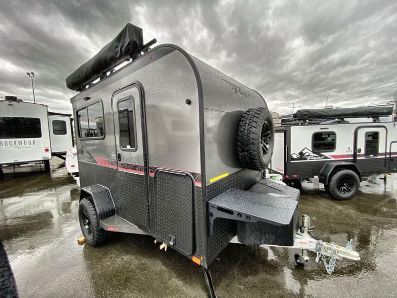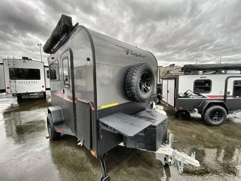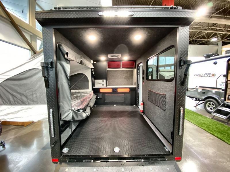 Not only is this Flyer toy hauler built to go where most traditional RVs cannot, but it is also built with a standard rear ramp or optional double rear doors, and six tie-down rings so that it can also serve as the perfect cargo transport too! The interior is spacious with its 46" x 81" tip-out bed, and if you add the second optional tip-out bed, you'll have an amazing amount of space on the inside. This expandable toy hauler is very functional, but you can make it even more enticing by adding optional Adventure Package that comes with an A/C, off-road tires, a roof rack, plus a slide out kitchen! This will allow you to cook wherever you choose to camp. The dry weight for this unit ranges from 1,580-2,110 LBS, the tongue weight ranges from 250-485 LBS, and the net carrying capacity ranges from 880-1,410 LBS.