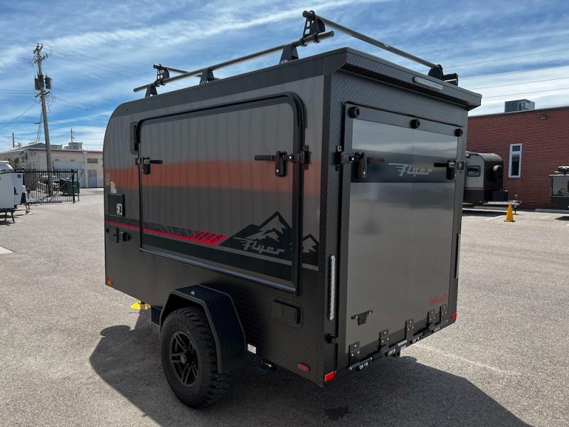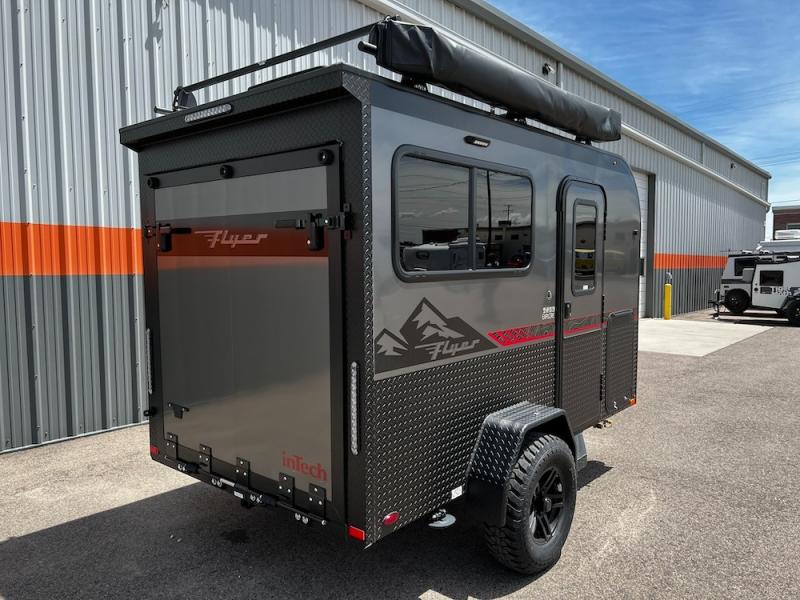 The inTech RV Flyer travel trailers and toy hauler expandables are ready for adventure whenever you are! With the all-aluminum, all-tube cage frame, the Flyer has been built with lightweight and long-lasting materials so that you can enjoy your unit for many, many years. The Flyer has a rugged design so that you can confidently explore new territory and go where traditional RVs cannot. The Flyer has a 2" rear receiver rated for 175 pounds which allows you to bring along your bikes, and the Bluetooth stereo has two speakers you can always have your best music playing. The optional roof rack will allow you to bring along kayaks, and there are more available options depending on the model you choose.